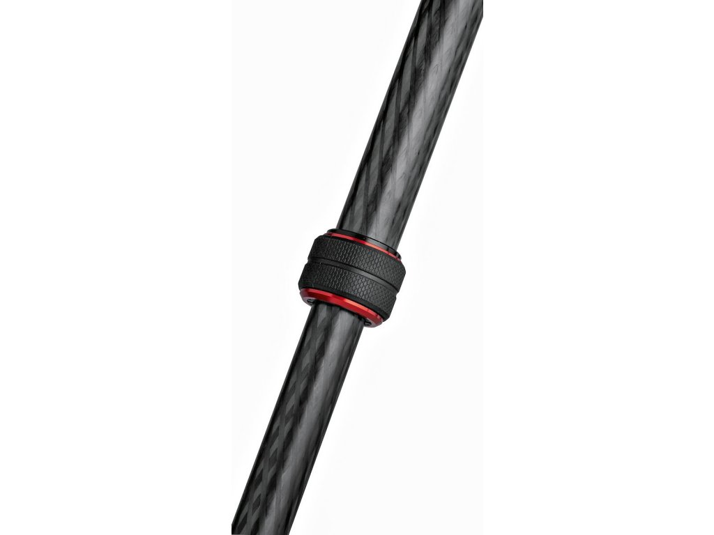 Karbonowa seria M swój profesjonalny status zawdzięcza przede wszystkim nowym karbonowym rurom. Karbonowe nogi tego statywu to doskonałe połączenie maksymalnej lekkości i stabilności. Karbonowe nogi w połączeniu z obrotowymi zamkami sprawiają, że statyw ten jest najbardziej przenośny z profesjonalnego asortymentu Manfrotto.
