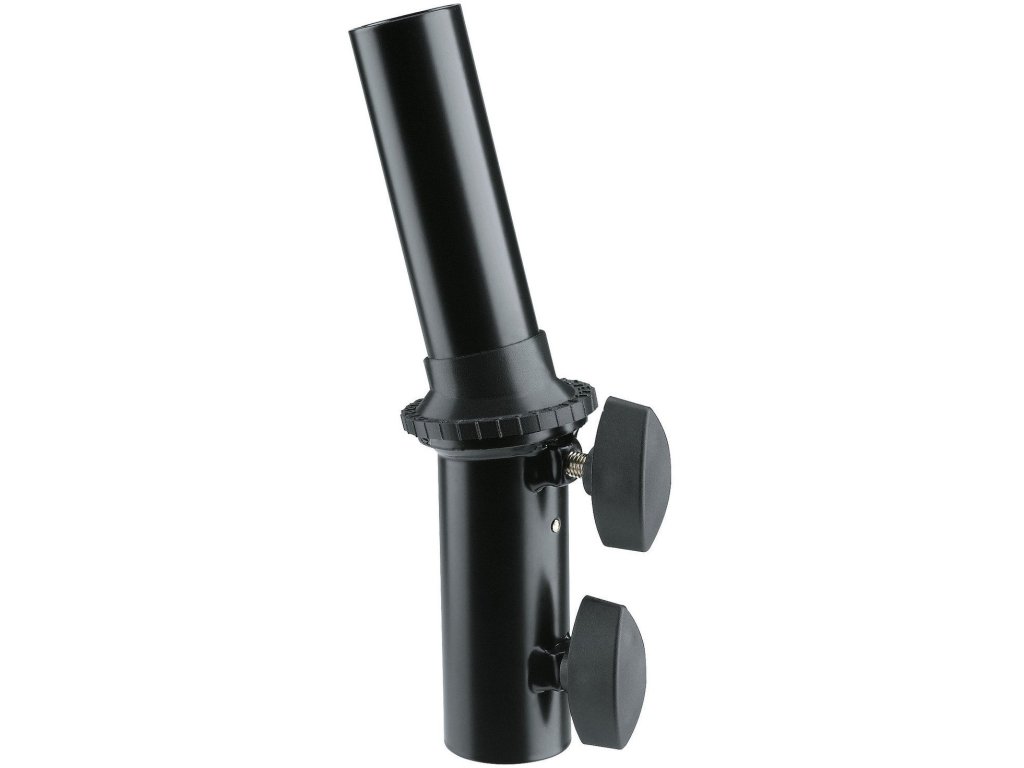 Adapter mocujący do statywów głośnikowych z kątem nachylenia do 15°.Przeznaczony do statywów o średnicy 35 mm. Mocowanie za pomocą śruby blokującej. Produkowany w kolorze czarnym.
