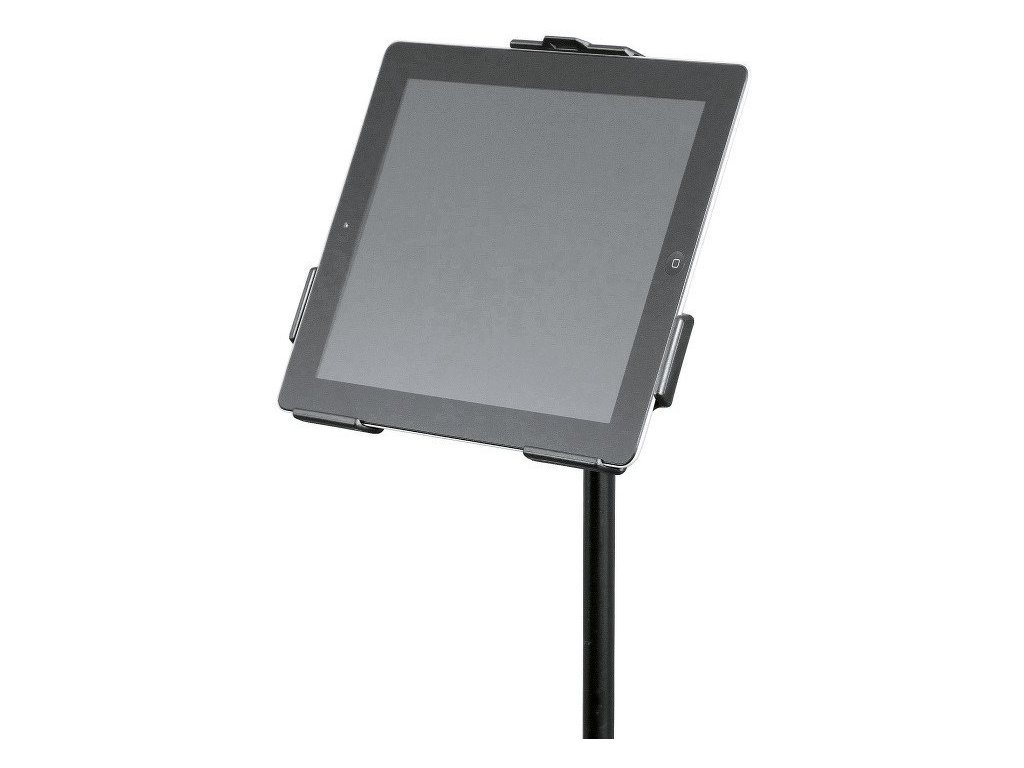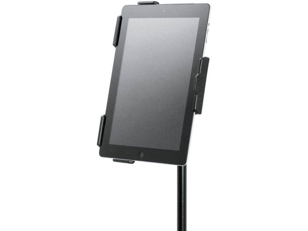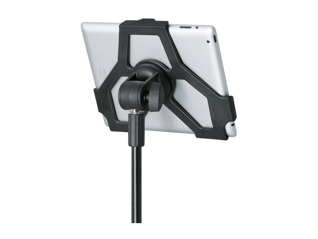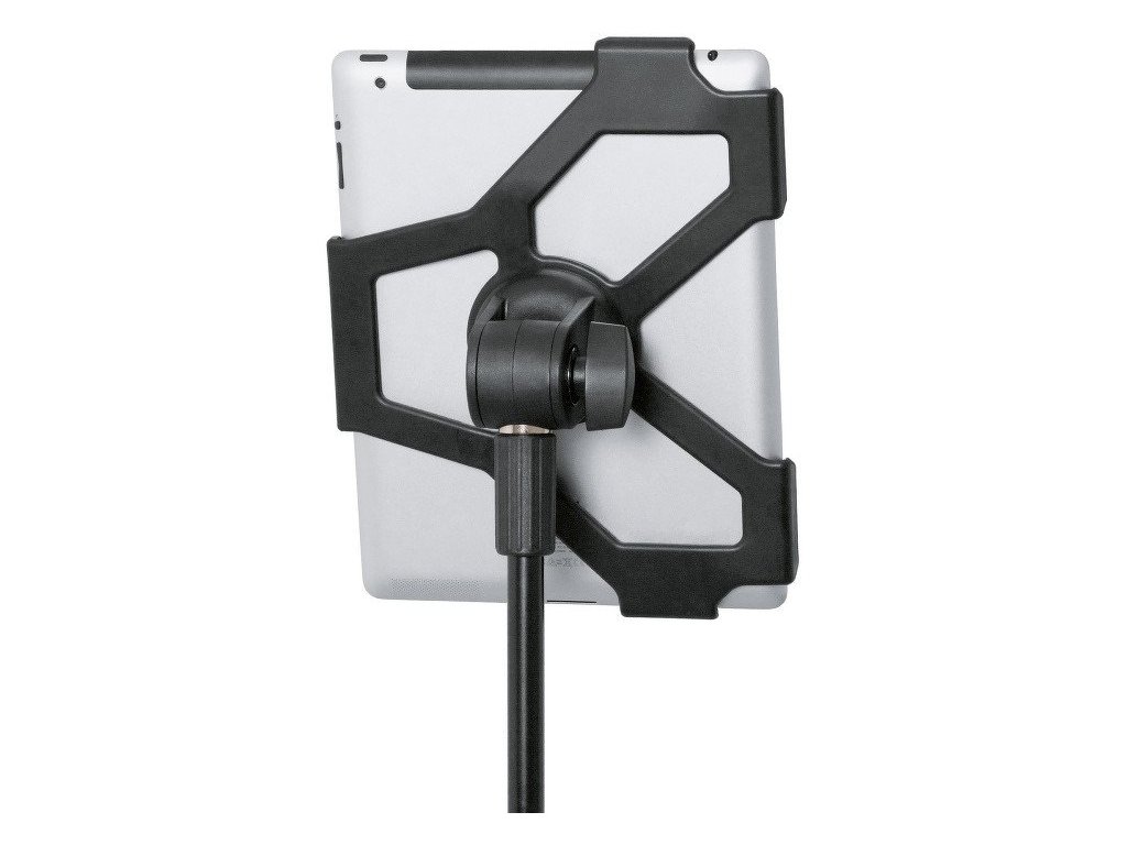 Uchwyt na statyw do łatwego i bezpiecznego mocowania iPada 2, 3 i 4 generacji. Uchwyt można przymocować do dowolnego statywu mikrofonowego z gwintem 3/8”. Zastosowanie znajdziesz na scenie, w sali prób lub w domu. IPada po umieszczeniu w uchwycie można obracać do pozycji pionowej i poziomej. Wymiary płyty 252,1 x 195,4 mm. Produkowany w kolorze czarnym.