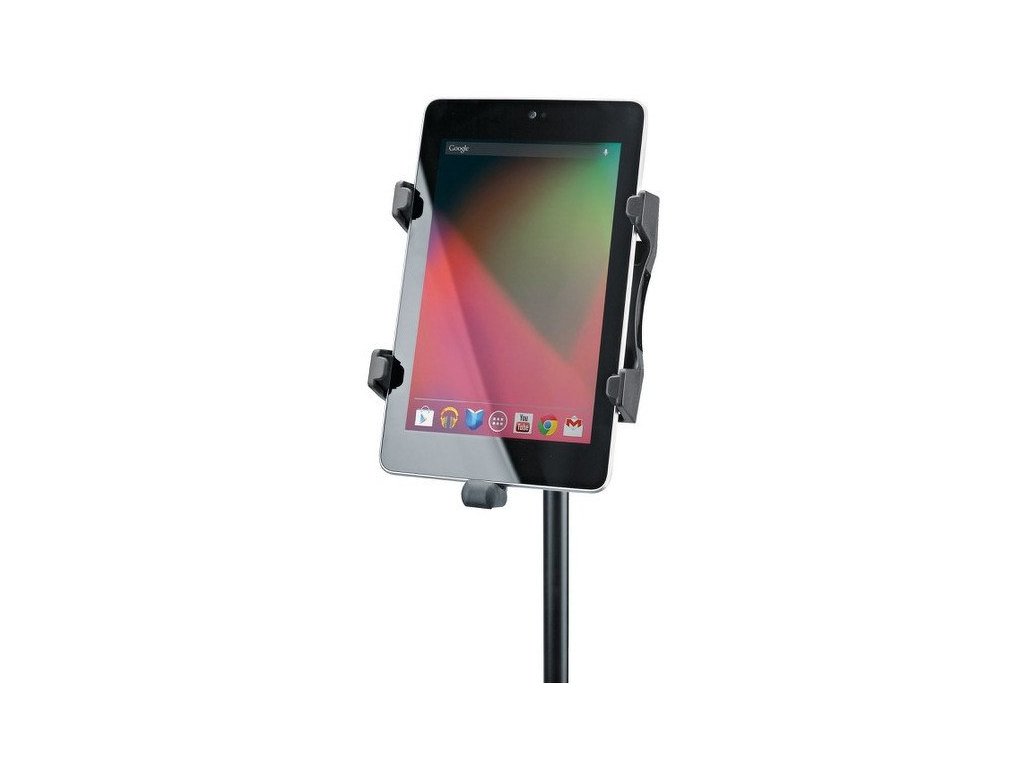 Uniwersalny uchwyt na tablet do mocowania na statywie mikrofonowym z gwintem 3/8". Wysokość uchwytu 120/220 mm. Szerokość 160/320 mm. Odpowiedni do iPad, iPad Air, iPad mini, Amazon Kindle, Amazon Fire, Samsung Galaxy Tab, Google Nexus, Asus Transformer lub Microsoft Surface. Swobodny dostęp do wszystkich złączy i elementów sterujących tabletu. Możliwość płynnej regulacji do pozycji poziomej i pionowej. Produkowany w kolorze czarnym.