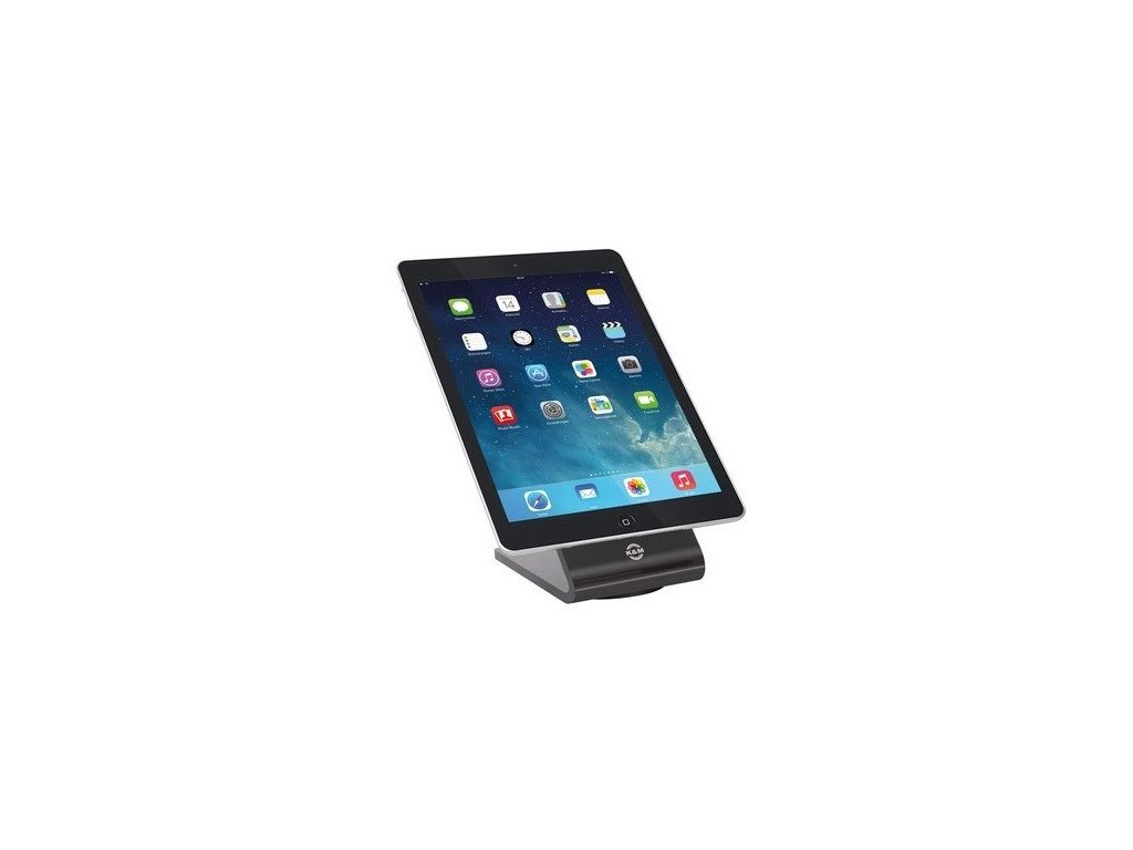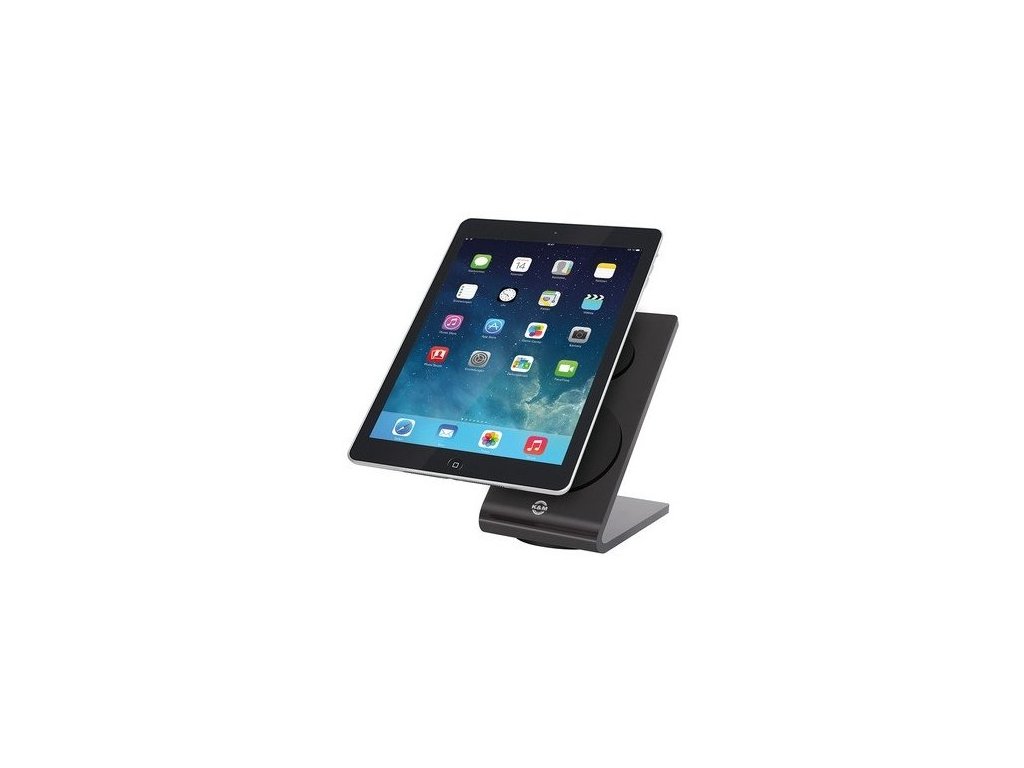Elegancki, uniwersalny stojak na tablet/iPad wykonany z błyszczącego czarnego szkła akrylowego. Wymiary stojaka: 130 x 80 x 140 mm. Mocowanie tabletu na przyczepnych podkładkach bez klejów i magnesów. Podkładki można łatwo czyścić wodą. Tablet można umieścić w pozycji poziomej i pionowej. Kąt nachylenia stojaka wynosi 45° dla komfortowego przeglądania zdjęć, filmów, surfowania i pisania. Na spodzie stojaka znajdują się dwie podkładki antypoślizgowe. Produkowany w kolorze czarnym.