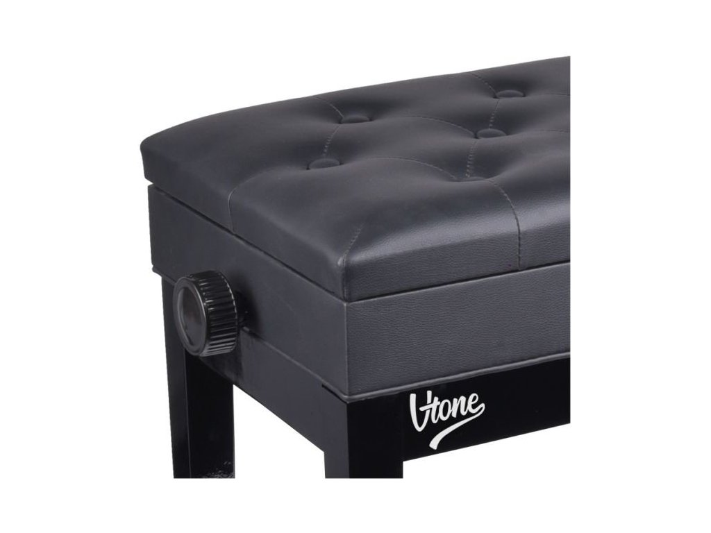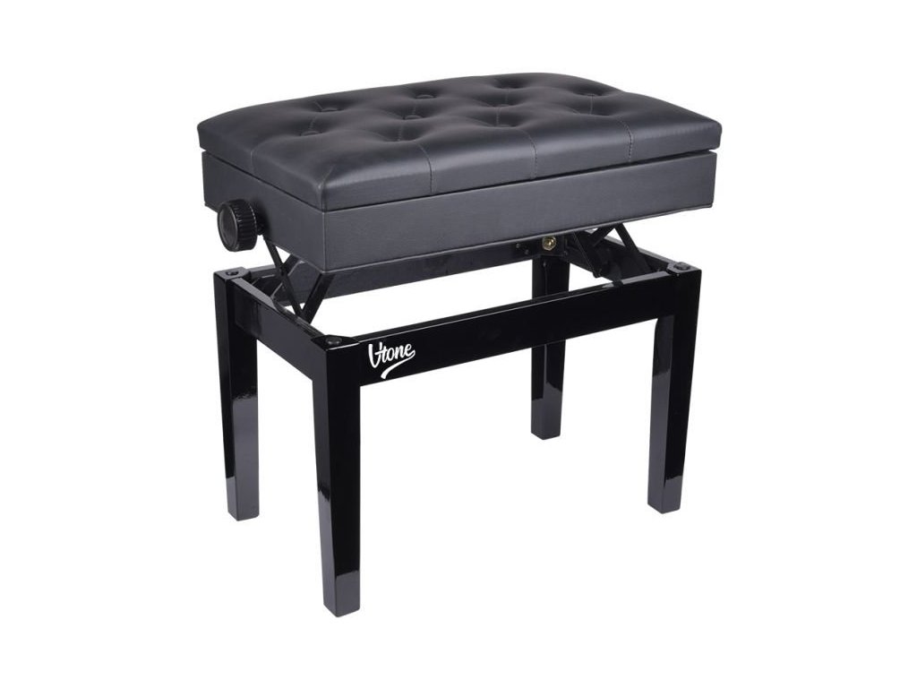 V-TONE Bench 2 to wszechstronne i bardzo solidne, a jednocześnie stosunkowo niedrogie krzesło do fortepianu, pianina lub innego rodzaju instrumentu z miejscem do przechowywania nut, zapisów nutowych i różnych akcesoriów przydatnych podczas gry. Konstrukcja stołka wykonana jest z litego drewna. Wygodne siedzisko wypełnione jest miękką gąbką techniczną i pokryte pikowaną skórą ekologiczną, którą łatwo wyczyścić w przypadku zabrudzenia. Wysokość stołka można płynnie regulować w zakresie od 45 do 55 cm i idealnie dopasować do indywidualnych preferencji użytkownika. Dzięki temu wszystkiemu stołek Bench 2 jest idealnym wyborem zarówno dla indywidualnych użytkowników, jak i dla szkół muzycznych, domów muzycznych oraz centrów kultury.
