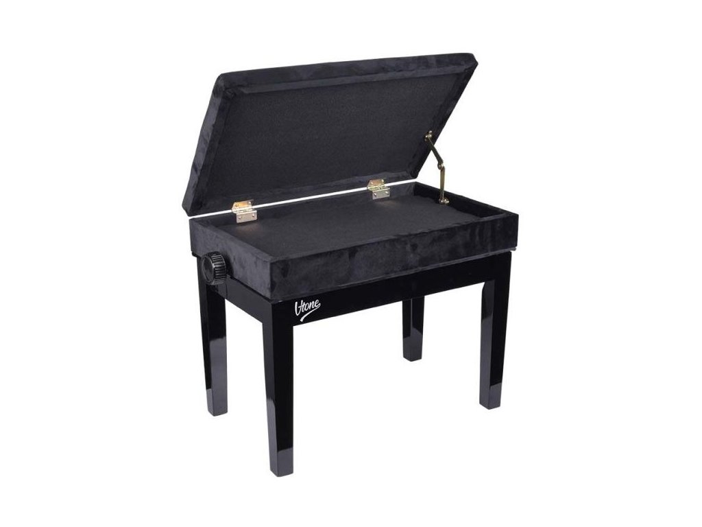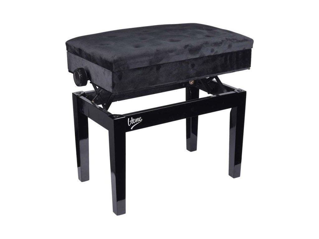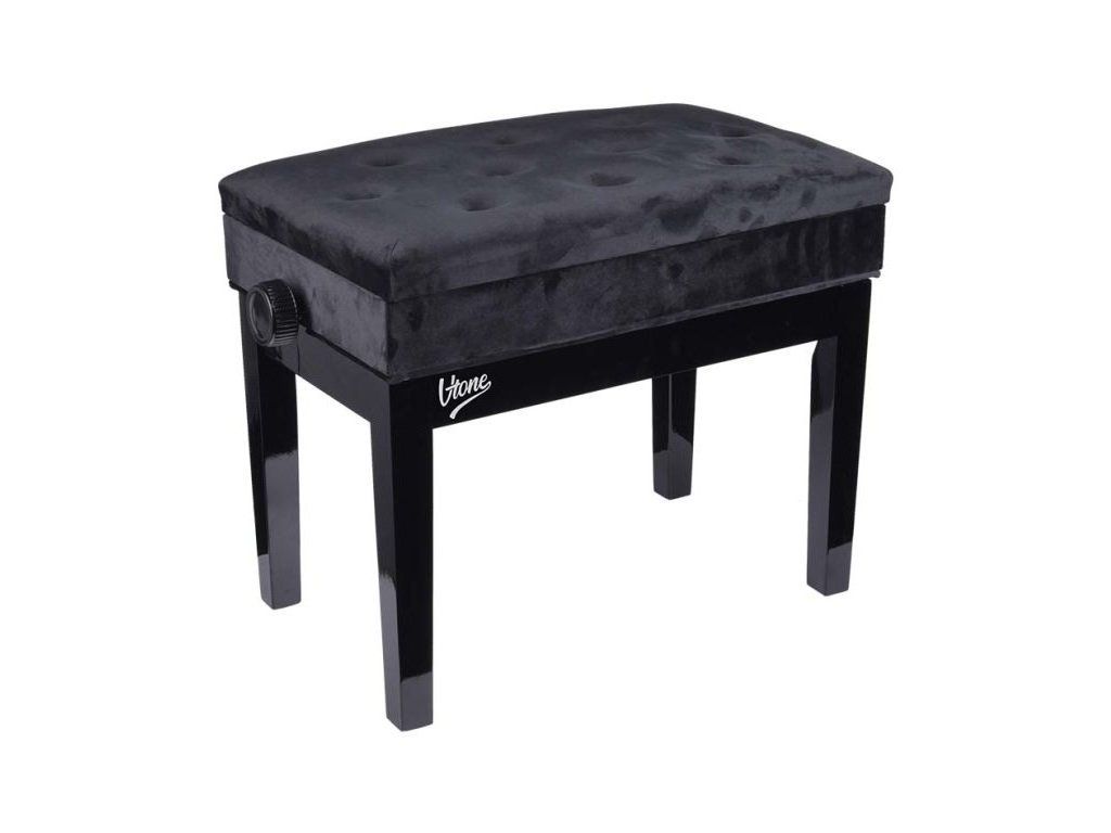 V-tone Bench 2 to uniwersalny i bardzo solidny stołek do pianina, fortepianu lub innego instrumentu ze schowkiem na nuty, zapisy nutowe i różne akcesoria przydatne podczas gry. Konstrukcja stołka wykonana jest z litego drewna. Wygodne siedzisko wypełnione miękką gąbką techniczną jest pokryte eleganckim, ciemnym welurem. Płynna regulacja wysokości od 45 do 55 cm pozwala idealnie dopasować wysokość stołka do osobistych preferencji. Dzięki temu wszystkiemu ten stołek do pianina V-tone jest idealnym wyborem zarówno dla użytkowników indywidualnych, jak i szkół muzycznych oraz domów kultury.