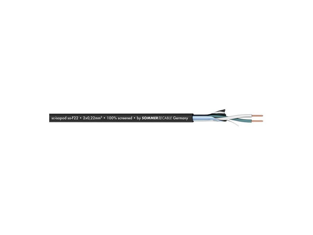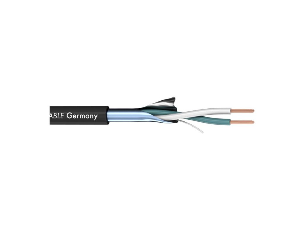 Symetryczny kabel instalacyjny, wysokiej jakości miedź OFC, przekroje żył 2 x 0,22 mm, 100% ekranowanie folią AL/PT, przekrój PVC 3,3 mm. Zakres temperatur użytkowania -25° C do + 70° C, waga 1 m 16 g, kolor czarny.