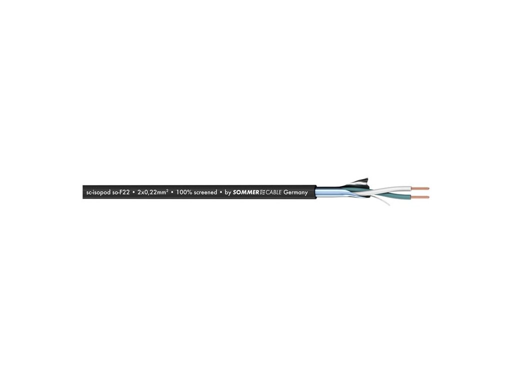 Symetryczny kabel instalacyjny, wysokiej jakości miedź OFC, przekroje żył 2 x 0,22 mm, 100% ekranowanie folią AL/PT, przekrój PVC 3,3 mm. Zakres temperatur użytkowania -25° C do + 70° C, waga 1 m 16 g, kolor czarny. W niepalnej powłoce FRNC.