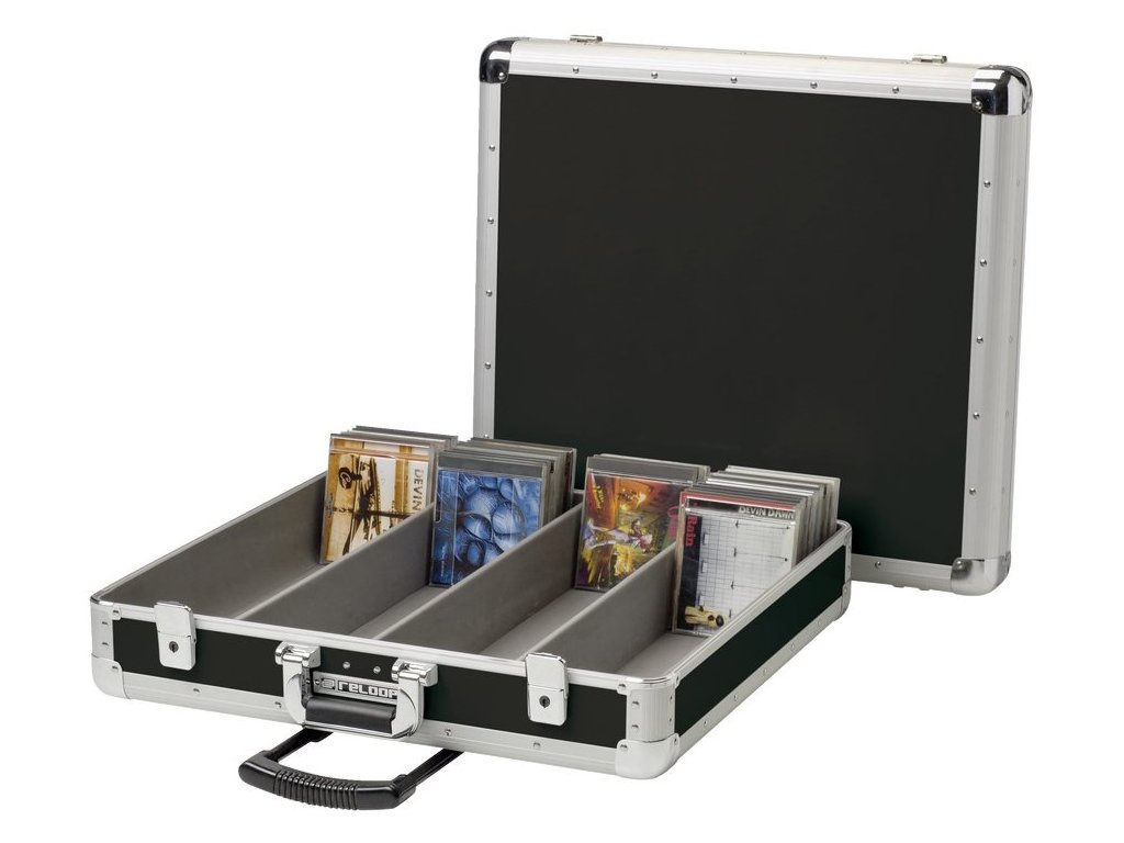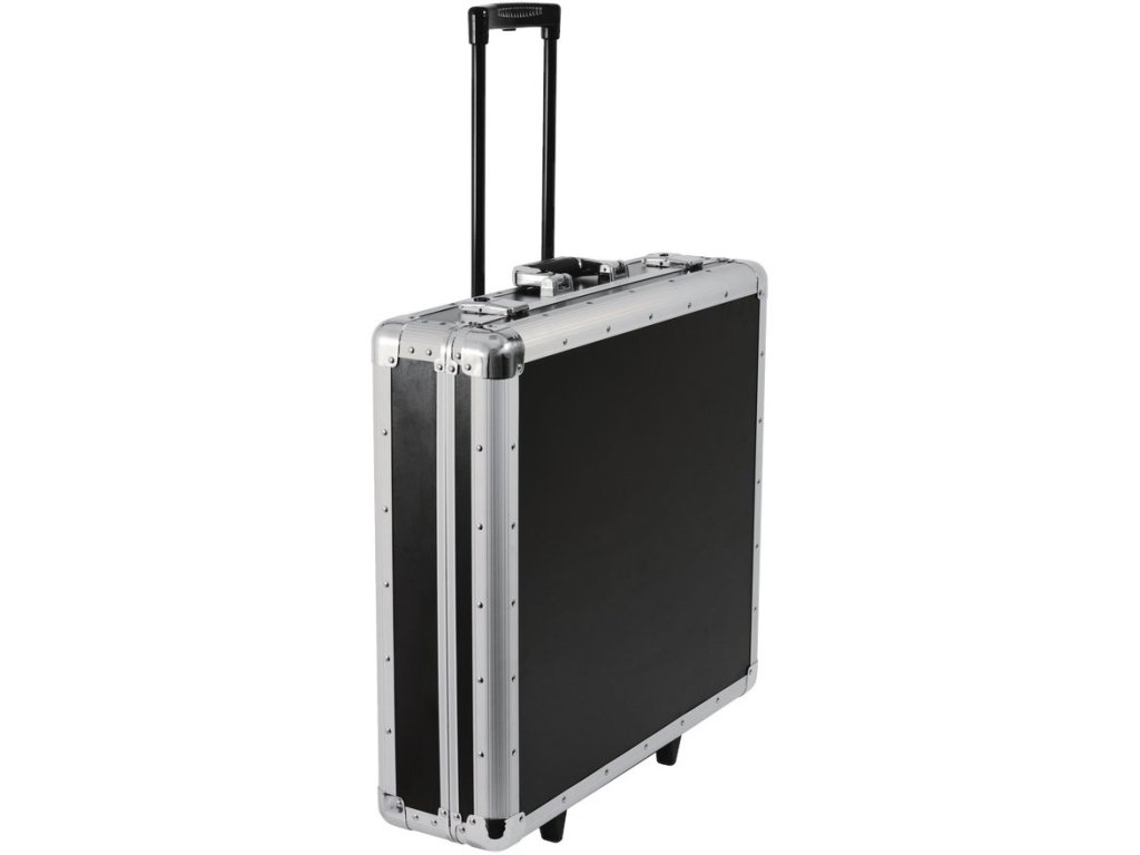 Walizka DJ na 200 płyt CD z wózkiem i wytrzymałą konstrukcją.