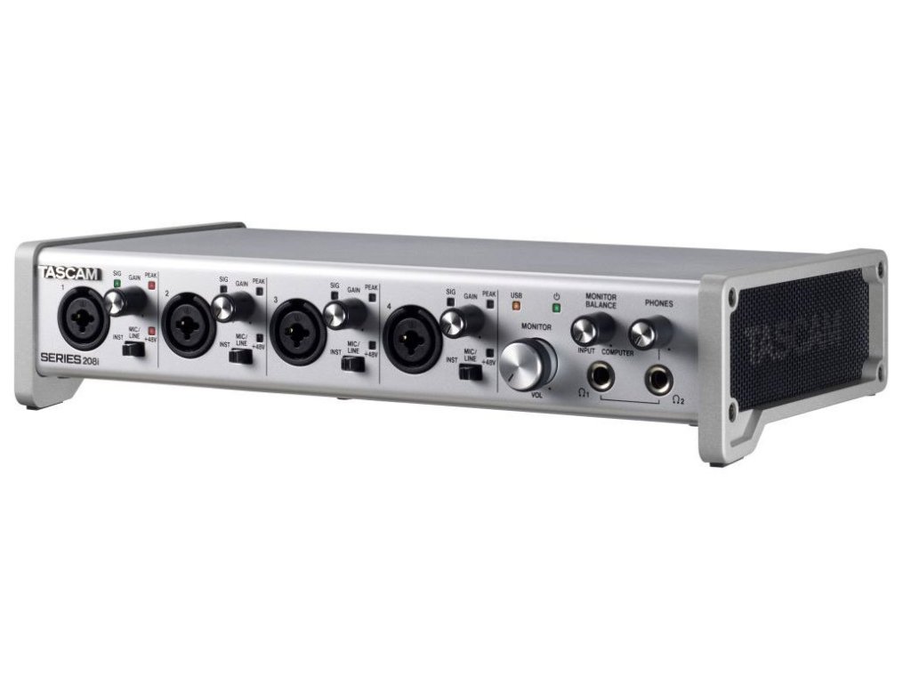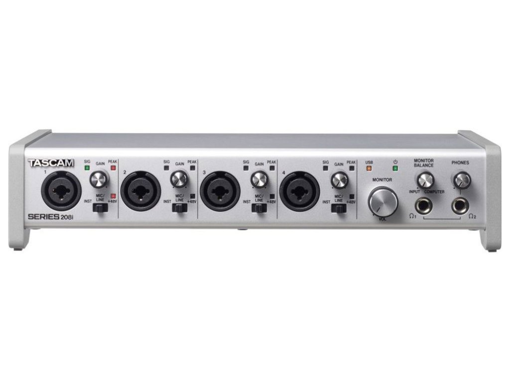 Interfejs audio / MIDI SERIES 208i to właściwy wybór dla profesjonalnego studia i nagrań na żywo. Zapewnia do 20 wejść audio i osiem wyjść audio do komputera Mac lub Windows albo urządzenia iOS do nagrywania i odtwarzania z doskonałą jakością dźwięku do 192 kHz / 24 bitów, jakiej oczekuje się od firmy Tascam. Ten uniwersalny interfejs USB jest sterowany za pomocą dołączonego oprogramowania użytkownika i jest wyposażony w wydajny procesor DSP, z wbudowanym cyfrowym reverbem, kompresorem, inwerterem fazy i czteropasmowym equalizerem dla każdego kanału. Wbudowanie tego procesora eliminuje wszelkie problemy z latencją i obciążeniem komputera, co pozwala mu efektywniej przetwarzać dźwięk.