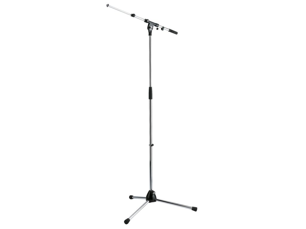 Profesjonalny statyw mikrofonowy z teleskopowym ramieniem. Trójnożna składana podstawa. Kolor chrom.