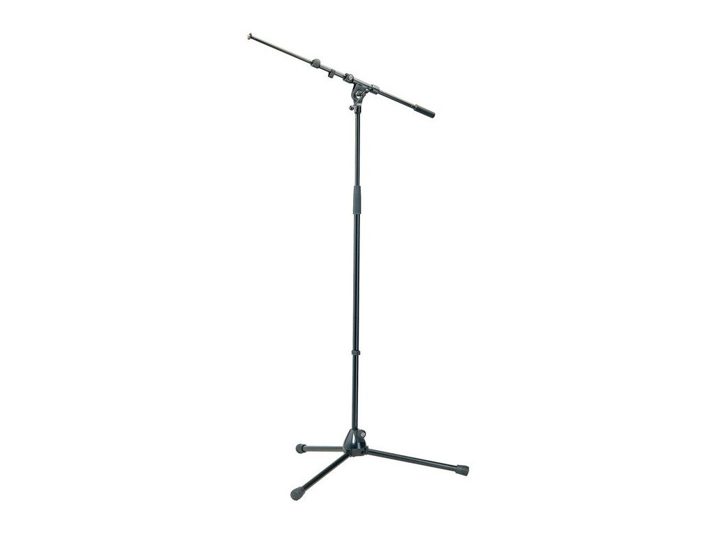 Profesjonalny statyw mikrofonowy z teleskopowym ramieniem. Trójnożna składana podstawa. Kolor czarny.