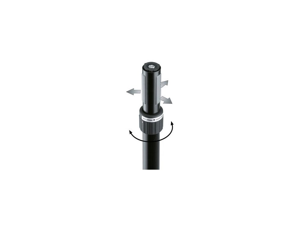 Stalowy pręt dystansowy do systemów satelitarnych. Jeden koniec jest wyposażony w opatentowany system blokujący »Ring Lock«, zapewniający szczelne i mocne osadzenie głośnika. Łatwe połączenie ze statywem bez wibracji. Drugi koniec tyczki jest wyposażony w gwint M20 do podłączenia do elementu mocującego 24116. Wysokość 880 mm. Nośność do 35 kg. Produkowany w kolorze czarnym.