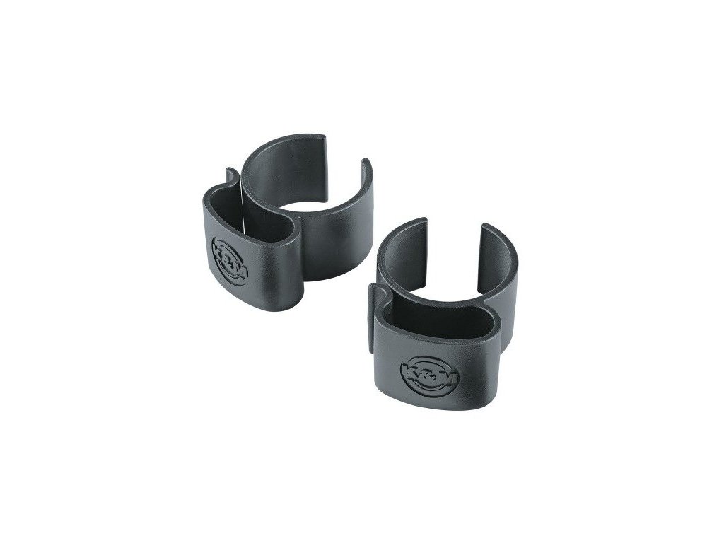 Zaciski kablowe (para) wykonane z tworzywa sztucznego odpornego na zużycie, odpowiednie do statywów głośnikowych i oświetleniowych o średnicy pręta od 35 do 42 mm. Produkowany w kolorze czarnym.