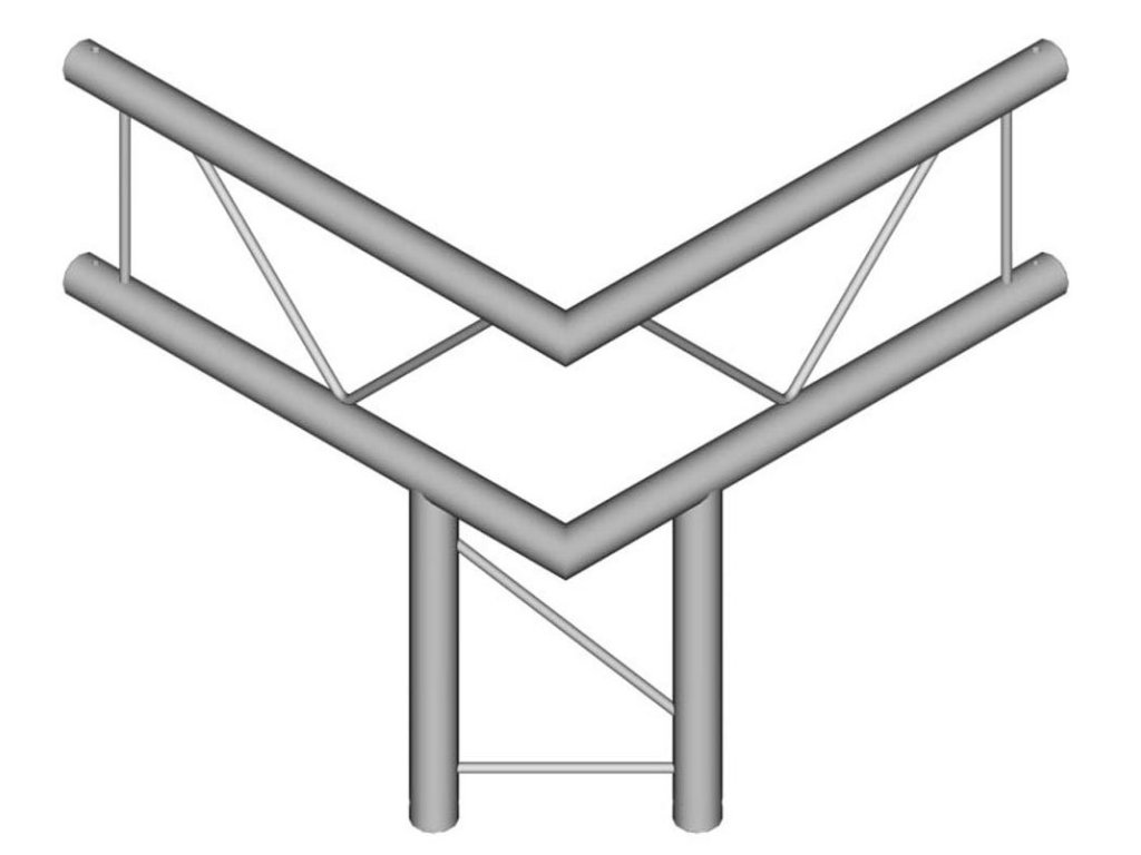 Narożny element konstrukcyjny, umożliwiający budowę konstrukcji scenicznych. Elementy są poziome pod kątem 90 °, uzupełnione o kierunek obrotu pionowego ramienia i wykonane z pary prętów o średnicy 35 mm i grubości ścianek 2 mm. Konstrukcja wykonana jest ze stopów AIMgSi1, wyprodukowana z grupy DT22 zachowuje niską wagę i wytrzymałość. Pręty wzmacniające mają średnicę 8 mm. Element jest wyposażony w końcówki do podłączenia kolejnych elementów. Opakowanie zawiera również śruby i klipsy zabezpieczające. Wymiary: 500 x 500 x 500 mm, waga: 2,2 kg