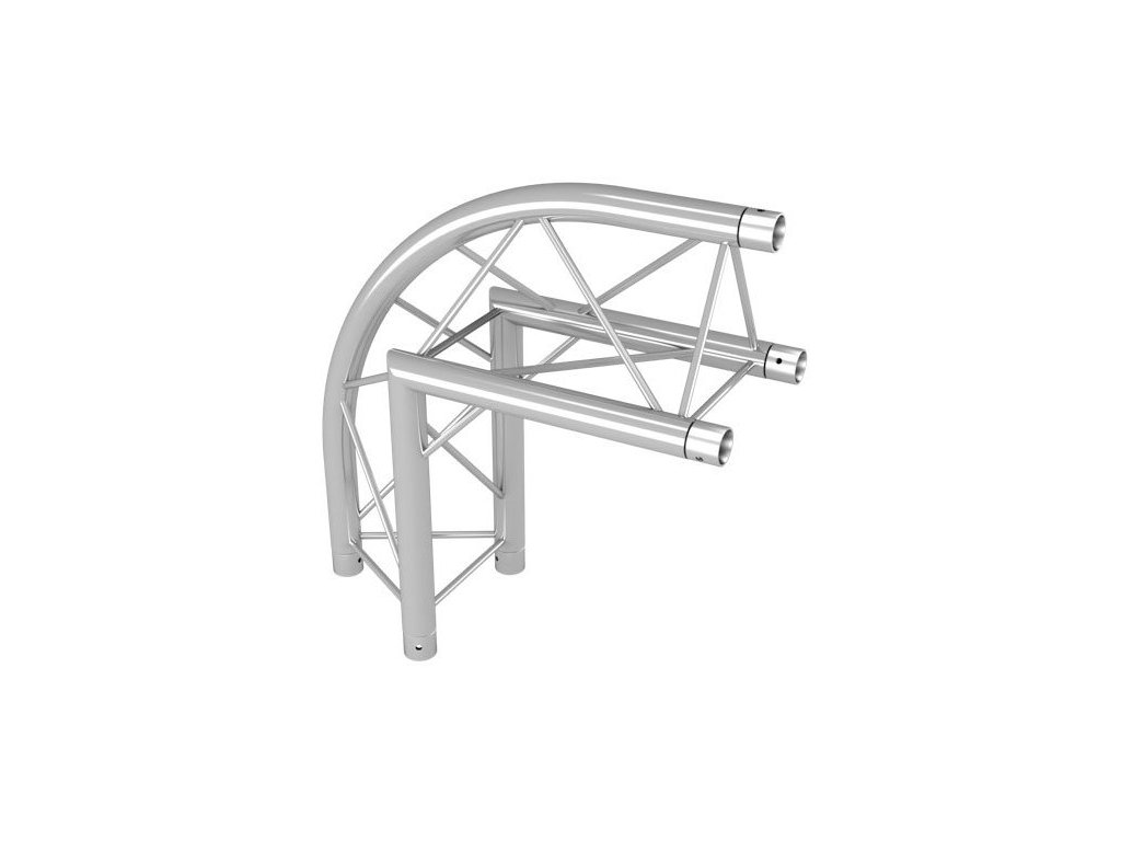 Dwukierunkowa, zakrzywiona, narożna część ze wzmocnieniami poprzecznymi, do konstrukcji scenicznej. Ma kąt 90°, jest wykonany ze stopu EN-AW 6060 T66, ma średnicę prętów nośnych 35 mm x 2 mm i średnicę wzmocnień 8 mm. Ma możliwość wykończenia powierzchni farbą proszkową, we wszystkich odcieniach RAL. Wymiary: 500 x 500 x 220 mm. Waga: 1,9 kg.