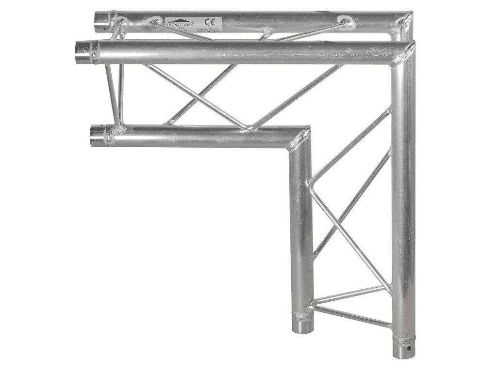 Dwukierunkowy element narożny z wewnętrznym wierzchołkiem i poprzecznymi wzmocnieniami, do konstrukcji scenicznej. Ma kąt 90°, jest wykonany ze stopu EN-AW 6060 T66, ma średnicę prętów nośnych 35 mm x 2 mm i średnicę wzmocnień 8 mm. Ma możliwość wykończenia powierzchni farbą proszkową, we wszystkich odcieniach RAL. Wymiary: 500 x 500 x 220 mm. Waga: 2 kg.