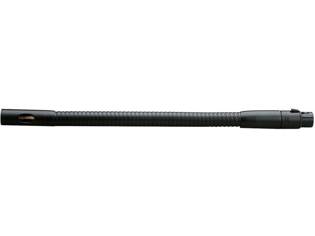 Łąbędzia szyja (elastyczny uchwyt) o długości 300 mm z bocznym otworem na kabel. Średnica gęsiej szyi 15 mm. Gwint 3/8", złącze wejściowe XLR3F. Produkowany w kolorze czarnym i niklowanym.