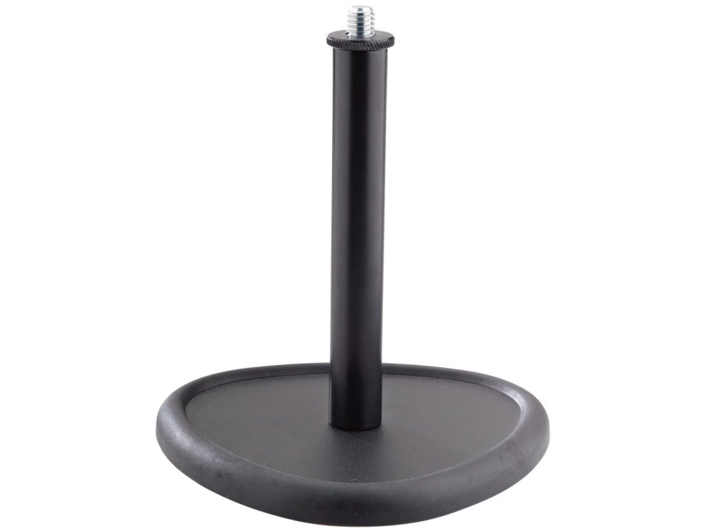 Stojak mikrofonowy biurkowy o atrakcyjnym wyglądzie. Trójkątna podstawa o średnicy 137 mm posiada antywibracyjną gumową wkładkę. Wysokość stojaka 152 mm. Produkowany w kolorze czarnym.