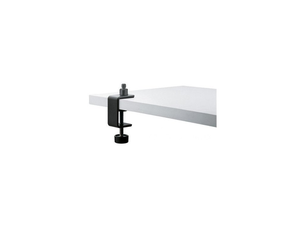 Klip do mikrofonu stołowego z gwintem 3/8" odpowiedni do gęsich szyjek itp. Produkowany w kolorze czarnym.