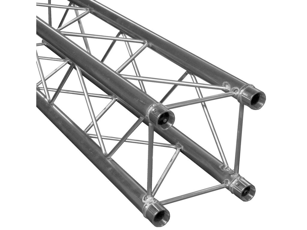 Element konstrukcyjny do budowy słupów i podiów oraz do zawieszania instalacji oświetleniowych lub dźwiękowych. Element z serii DT 24 jest wykonany z czterech rur o średnicy 35 mm i grubości ścianek 2 mm. Konstrukcja wykonana jest ze stopu AlMgSi1, dzięki czemu każdy z elementów serii DT 24 zachowuje niską wagę i wysoką wytrzymałość. Pręty wzmacniające mają średnicę 8 mm. Element jest wyposażony w końcówki do zasilania kolejnych elementów. W zestawie znajdują się również śruby i klamry zabezpieczające. Wymiary: 500 x 220 x 220 mm, waga: 1,8 kg.
