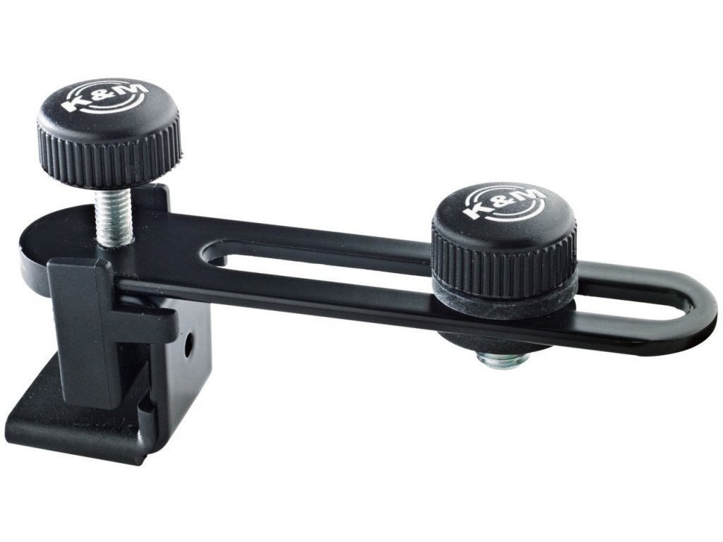 Kompaktowy uchwyt z gwintem 3/8" do mocowania mikrofonów na perkusji - bębnach basowych. Łatwy montaż. Mikrofon można przesuwać do odległości 70 mm od bębna. Uchwyt posiada gumową wkładkę absorbującą hałas i wstrząsy. Produkowany w kolorze czarnym.