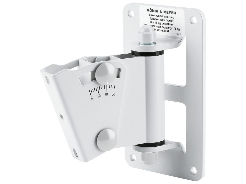 Wielofunkcyjny uchwyt ścienny do głośników. Nośność 15 kg. Zamontowany głośnik można obracać na boki i pochylać do 30 °. Łatwy montaż poprzez zawieszenie i zabezpieczenie śrubą.