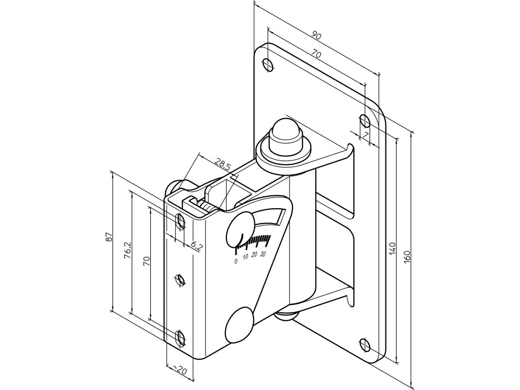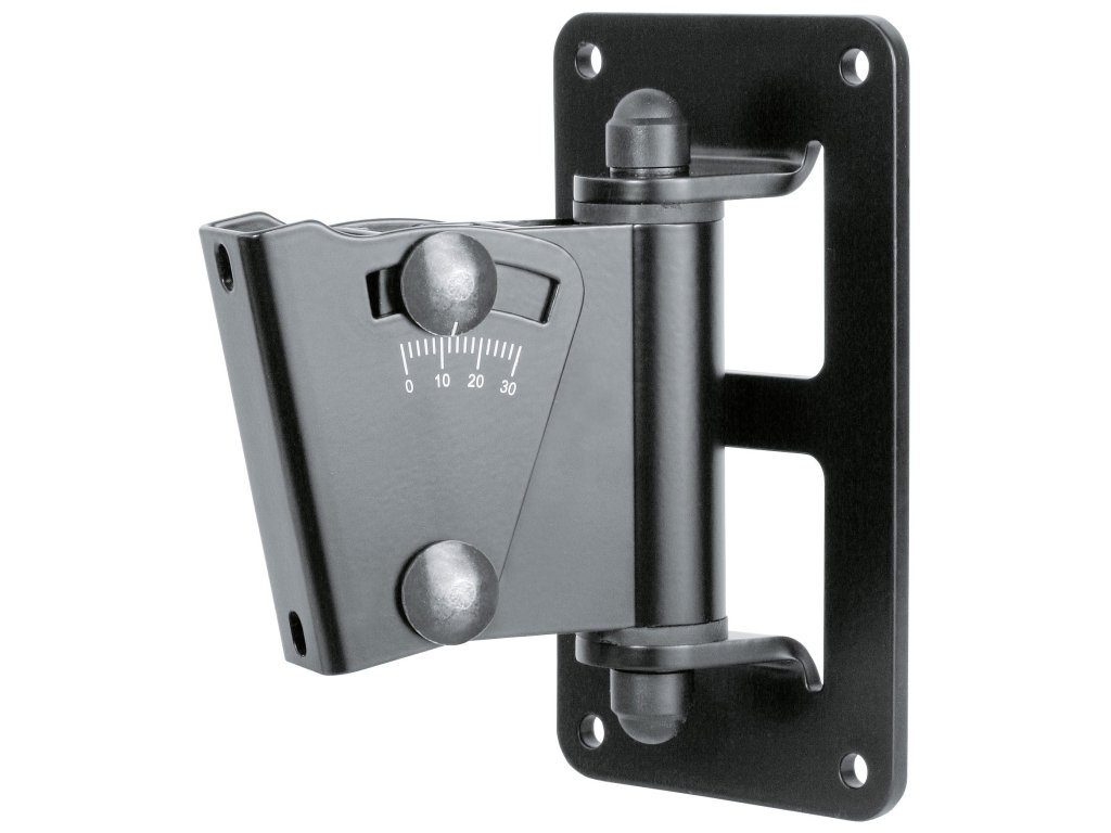 Wielofunkcyjny uchwyt ścienny do głośników. Nośność 15 kg. Zamontowany głośnik można obracać na boki i pochylać do 30 °. Łatwy montaż poprzez zawieszenie i zabezpieczenie śrubą.
