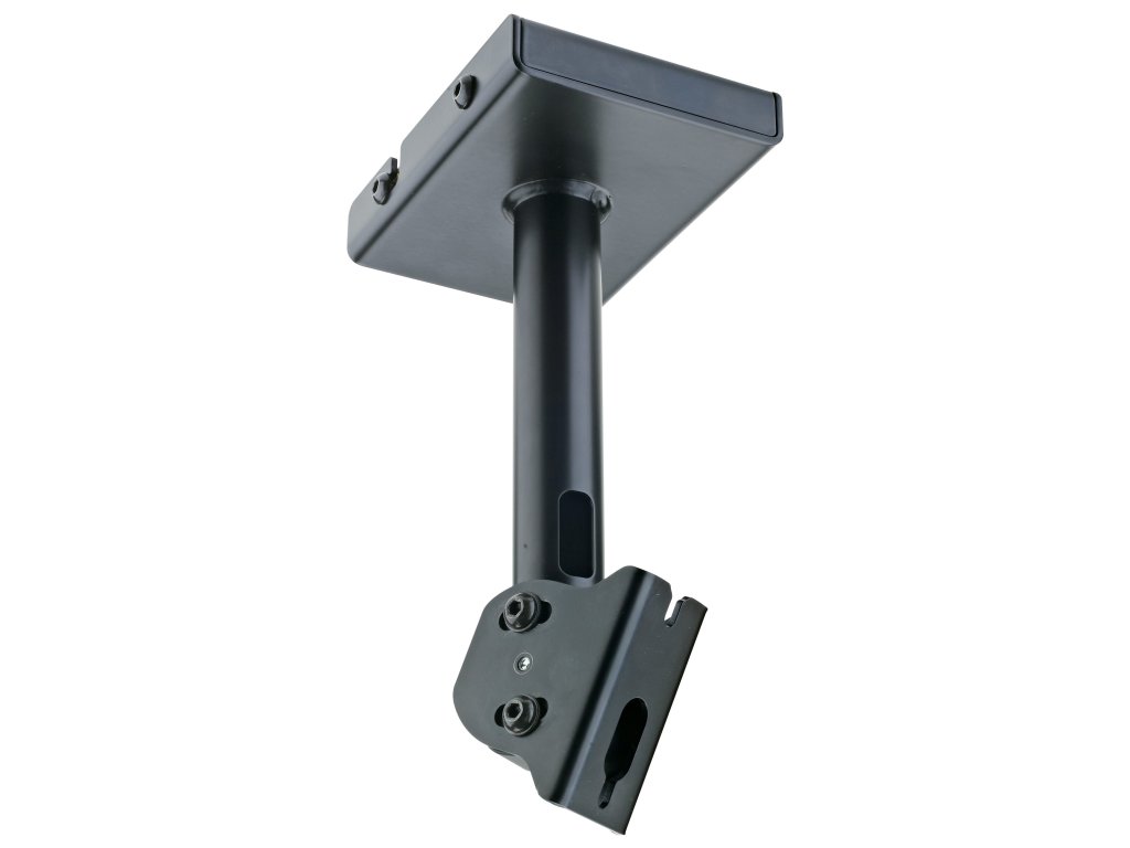 Wytrzymały stalowy uchwyt do montażu głośnika na suficie. Ukryte wewnętrzne prowadzenie kabli. Odległość od sufitu 250 mm. Nośność 25 kg. Kąt obrotu do 90°. Kąt nachylenia 0 - 45°. Uchwyt jest przeznaczony do głośników z pionowym szablonem montażowym od 70 do 76,2 mm. Dostępne są dodatkowe adaptery dla innych opcji mocowania. Montaż na suficie ułatwia konsola montażowa z bocznym i środkowym prowadzeniem kabli.