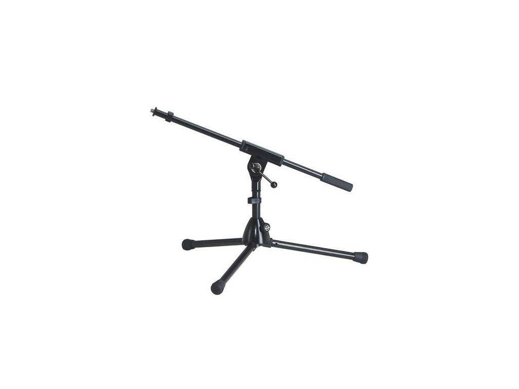 Niski statyw mikrofonowy z ramieniem. Kolor czarny.