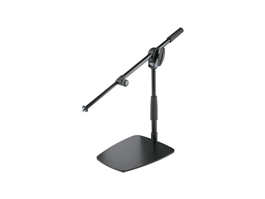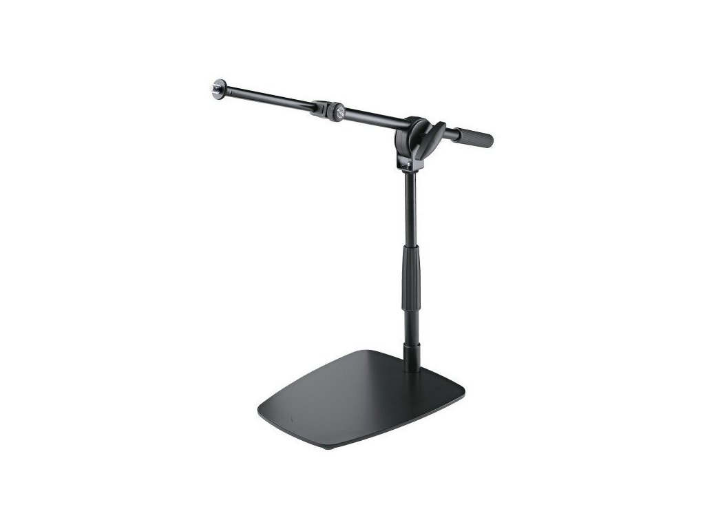 Kompaktowy, oszczędzający miejsce statyw mikrofonowy wysięgnikowy do nagrywania bębnów basowych, wzmacniaczy, cajonów itp. Dzięki łatwej regulacji wysokości i wysięgnikowi, mikrofon można ustawić indywidualnie i bardzo precyzyjnie, zgodnie z potrzebami. Cztery elastyczne gumowe nóżki na płaskiej podstawie absorbują dźwięki uderzeniowe i redukują niepożądany hałas podczas transmisji. Wysokość 275 - 405 mm. Produkowany w kolorze czarnym.