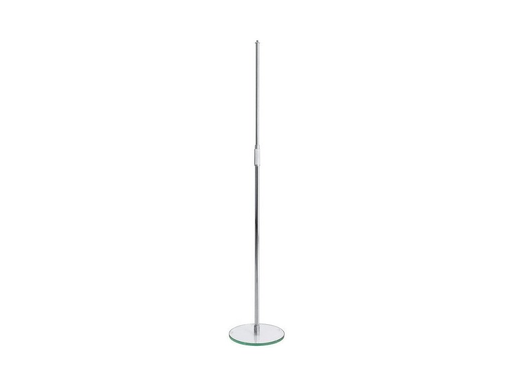Mikrofonowy wysuwany antywibracyjny statyw solo z okrągłą podstawą. Wysokość statywu 870 - 1570 mm. Statyw wykonany jest ze stali, podstawa o średnicy 250 mm jest szklana i posiada antywibracyjną gumową wkładkę. Produkowany w kolorze chrom.