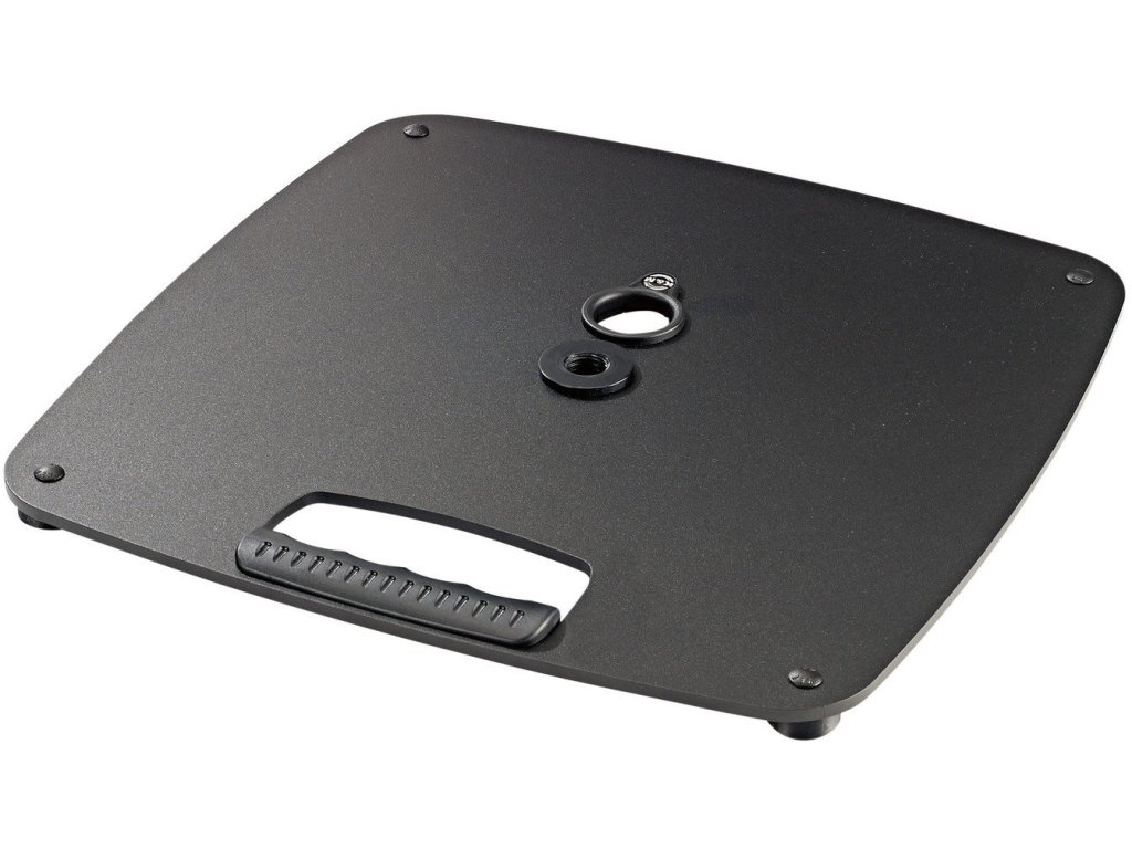 Stalowa podstawa o wymiarach 480 x 480 mm, odpowiednia do standardowych typów drążków dystansowych ze śrubą gwintowaną M20. Waga 10 kg. Podstawa jest wyposażona w uchwyt, przepust kablowy i cztery nóżki. Produkowany w kolorze czarnym.