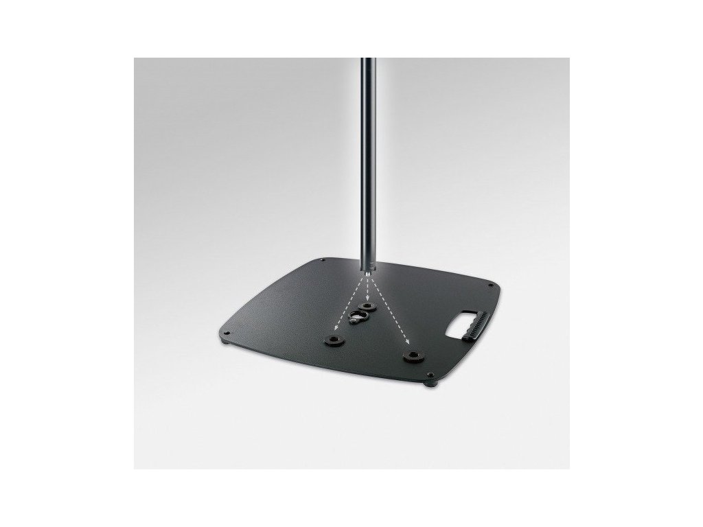 Stalowa podstawa o wymiarach 550 x 550 x 27,3 mm do wszystkich standardowych kombinacji drążków dystansowych ze śrubą gwintowaną M20. Waga 13,2 kg. Możliwość umieszczenia drążka dystansowego w pozycji środkowej i mimośrodowej, może być również zamocowany w rogu podstawy. Podstawa jest wyposażona w uchwyt, przepust kablowy i cztery nóżki pokryte filcem.