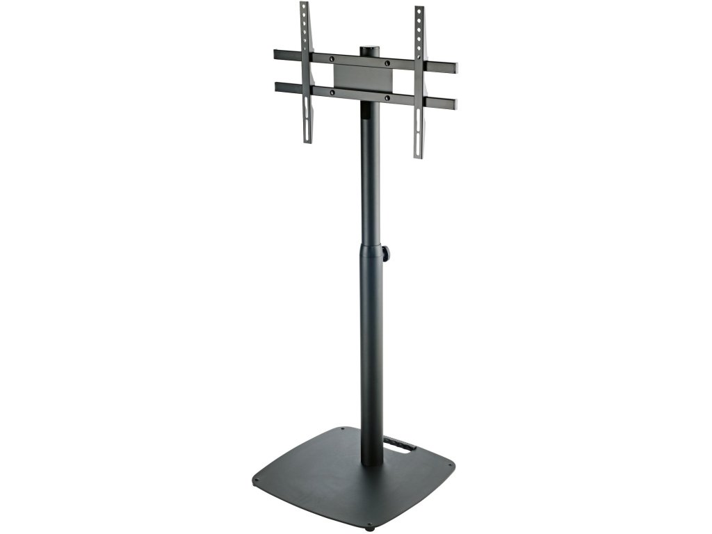 Nowoczesny stalowy stojak do monitorów LCD z płaską stalową podstawą. Wysokość 1058/1608 mm. Regulacja wysokości skokowa za pomocą ergonomicznego sprężynowego kołka zaciskowego. Dołączone akcesoria montażowe umożliwiają standardowy montaż VESA dla monitorów LCD od 24 "do 46". Ukryte wewnętrzne prowadzenie kabli. Produkowany w kolorze czarnym.