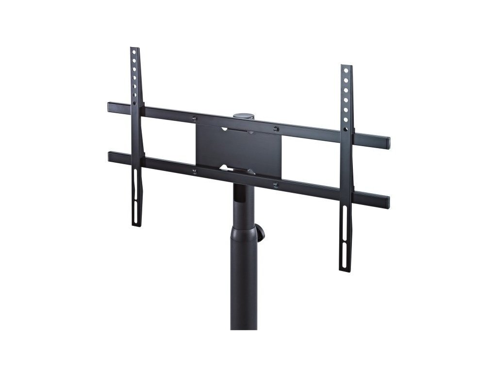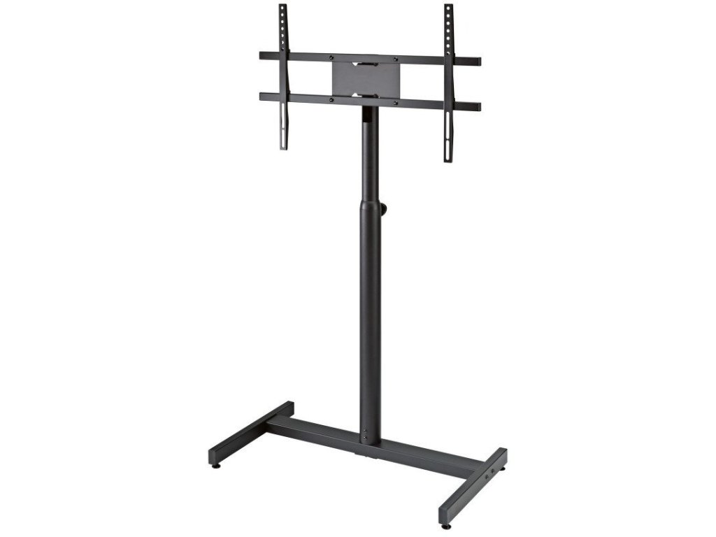 Stabilny stalowy stojak do monitorów LCD. Wysokość 1100 - 1650 mm. Regulacja wysokości skokowa za pomocą ergonomicznego sprężynowego kołka zaciskowego. Dołączone akcesoria montażowe umożliwiają standardowy montaż VESA dla monitorów LCD od 42" do 65". Ukryte wewnętrzne prowadzenie kabli. Zintegrowane regulowane nóżki stabilizują stojak na nierównej powierzchni i zapewniają jego stabilność. Produkowany w kolorze czarnym.