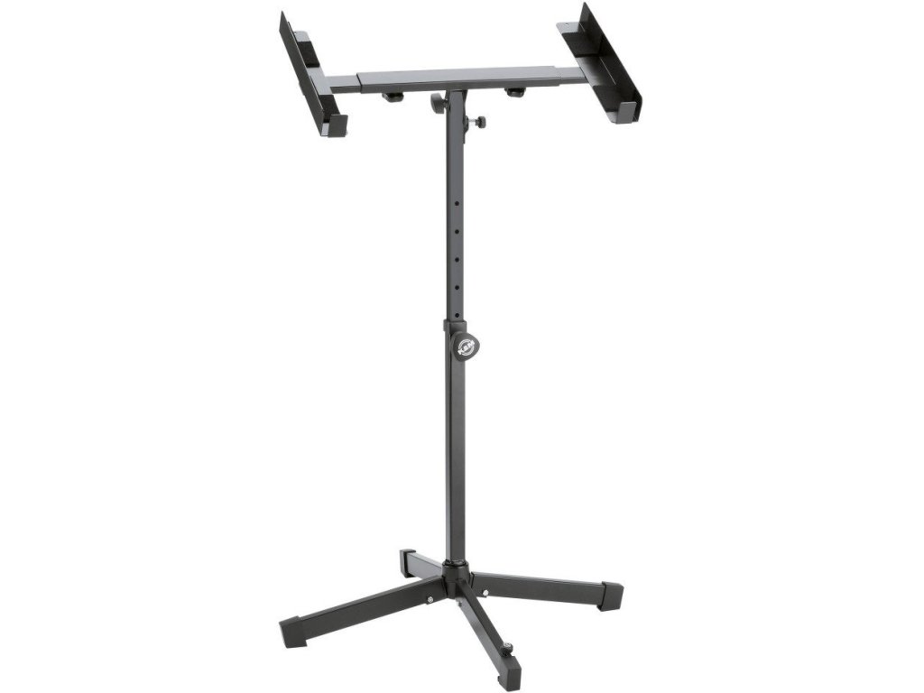 Wytrzymały stalowy stojak pod wzmacniacz lub mikser. Wysokość 710 - 1005 mm. Nośność 35 kg. Regulacja wysokości za pomocą sprężynowej śruby blokującej. Ramiona nośne regulowane w krokach co 15°. Filcowe podkładki do umieszczenia urządzenia. Stojak jest składany. Produkowany w kolorze czarnym.