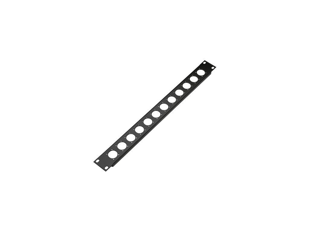 Szyna rackowa do złącz XLR, 12 XLR, 1 U. Produkowany w kolorze czarnym.