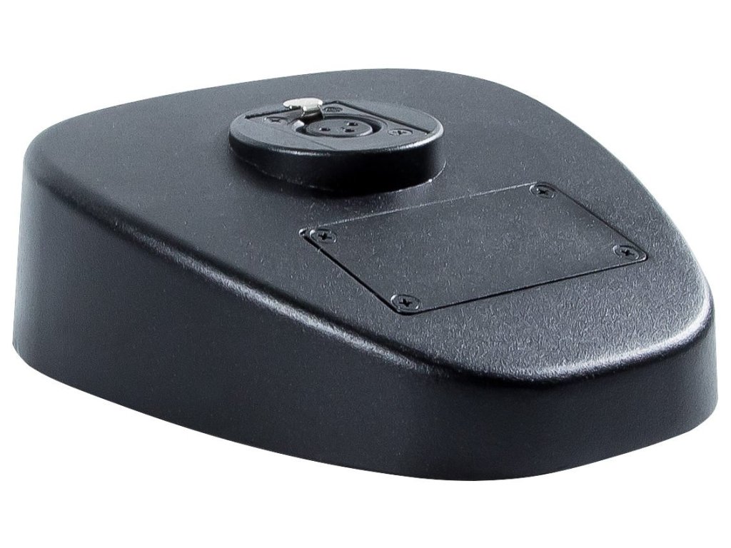 Stojak mikrofonowy biurkowy ze zdejmowaną płytą umożliwiającą montaż przełączników, wskaźników lub złączy. Stojak posiada wejściowe złącze XLR3 (F), wyjściowe złącze XLR3 (M). Produkowany w kolorze czarnym.