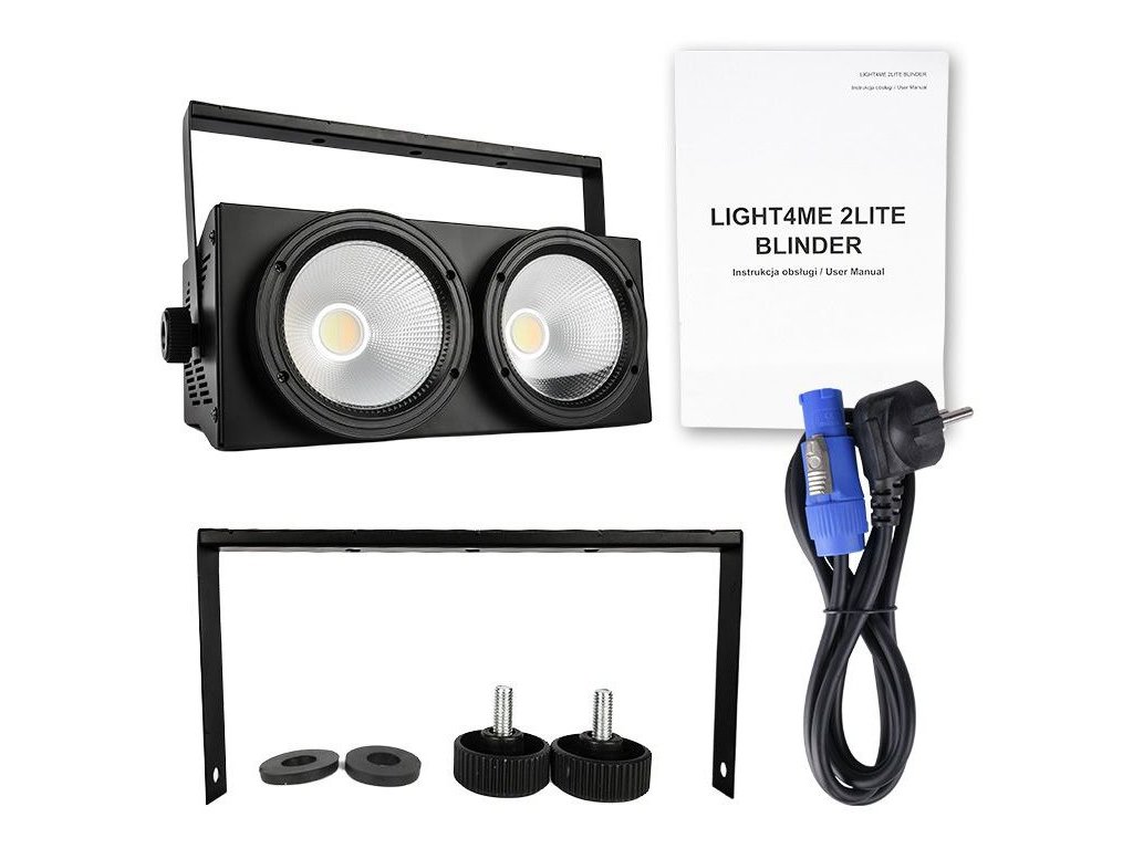 Light4Me 2Lite Blinder to bardzo wydajny reflektor sceniczny wyposażony w 2x 125 W diody LED oraz możliwość regulacji temperatury barwowej bieli (zimna i ciepła biel). Reflektor ten doskonale oświetli scenę, a jednocześnie stworzy efekty stroboskopowe, które przyciągną uwagę publiczności. Jest nieocenionym narzędziem dla oświetleniowców pracujących na koncertach, przedstawieniach w domach kultury, teatrach, klubach tanecznych i dyskotekach. Mobilni DJ-e, zespoły na imprezach i wszyscy, którzy chcą uatrakcyjnić swoje występy, znajdą w tym reflektorze niezastąpione narzędzie pracy.
