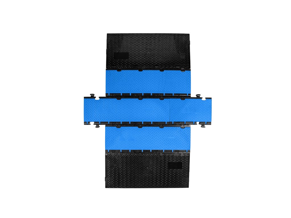 Długość i szerokość systemu można łatwo zwiększyć, łącząc środkowe części i rampy, zapewniając w ten sposób wystarczającą pojemność nawet w wymagających środowiskach, takich jak obszary w pobliżu generatorów lub strefy FOH. Kable i węże można układać przejrzyście i bezpiecznie. Dzięki symetrycznej konstrukcji wszystkich środkowych części montaż jest intuicyjny i nie wymaga żadnych specjalnych schematów. Wszystkie połączenia są zaprojektowane z myślą o łatwym łączeniu i maksymalnej stabilności. Do połączenia z klasycznym Defenderem 3 dostępne są adaptery.