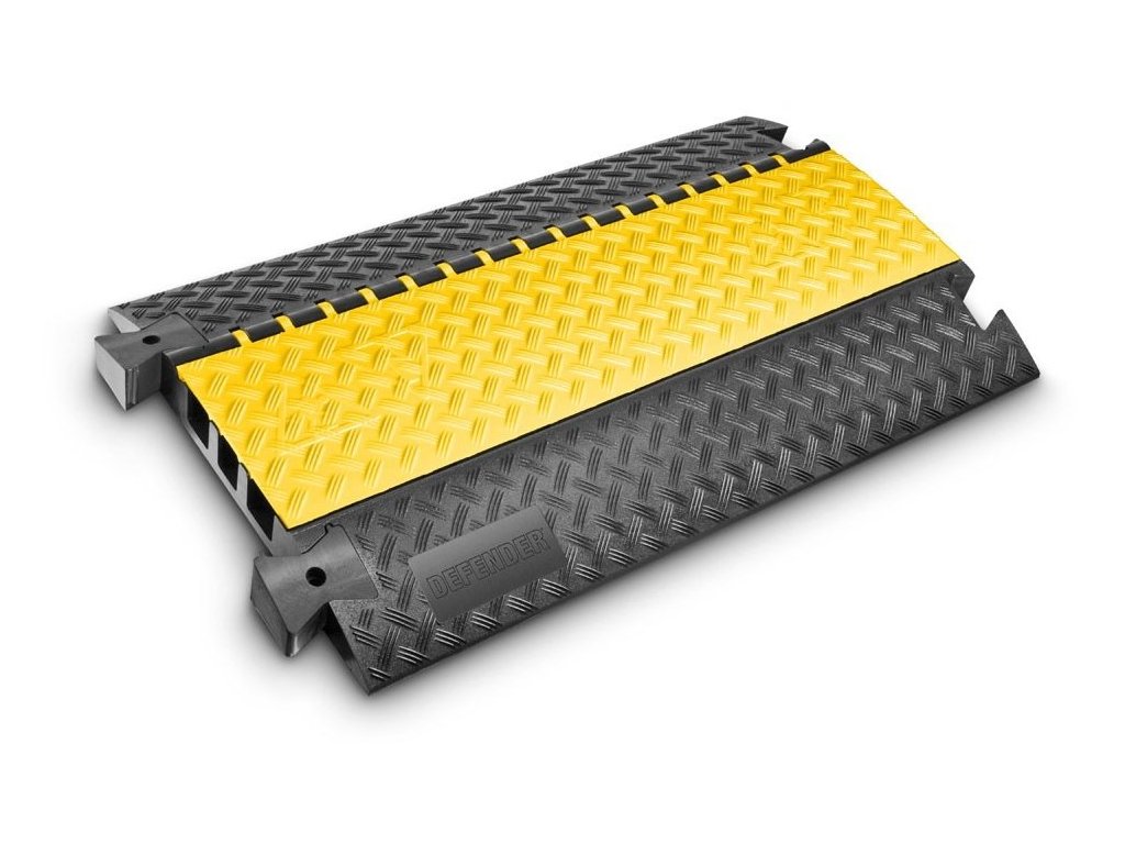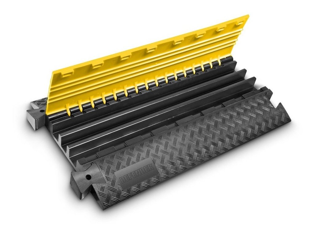 Dzięki wysokości 73 mm, zdejmowanym sworzniom łączącym oraz łukom 45° i zaślepkom jako akcesoriom, wszechstronne najazdy kablowe Defender® 3 idealnie nadają się do bezpiecznego prowadzenia kabli i przejść dla pojazdów i pieszych. Najazdy Defender 3 charakteryzują się 3 średniej wielkości kanałami kablowymi, zintegrowanymi uchwytami dla optymalnej obsługi i nośnością 5 ton na powierzchni 25 x 30 cm. Dzięki temu najazdy kablowe o wysokości 73 mm są doskonałymi, wszechstronnymi pomocnikami do szerokiego zakresu zastosowań, na przykład do ciężkiego transportu towarowego, na place budowy, do magazynów, centrów handlowych, na targi, wystawy, karnawały i imprezy muzyczne.