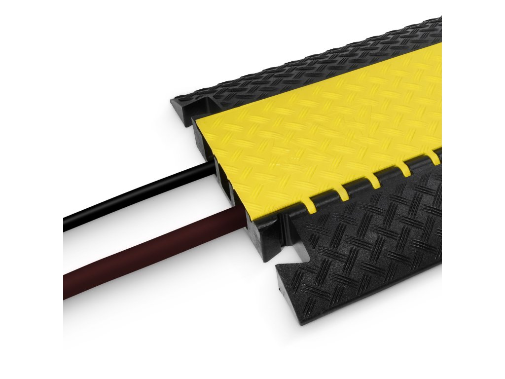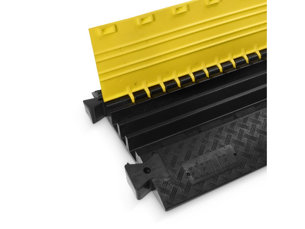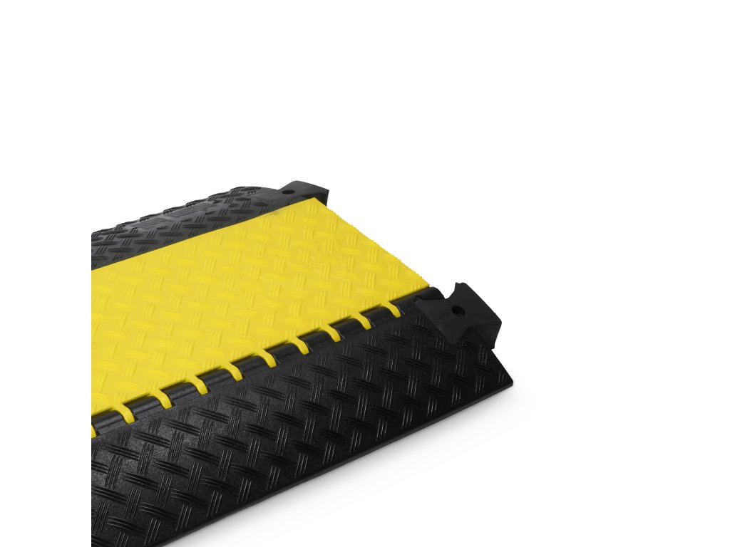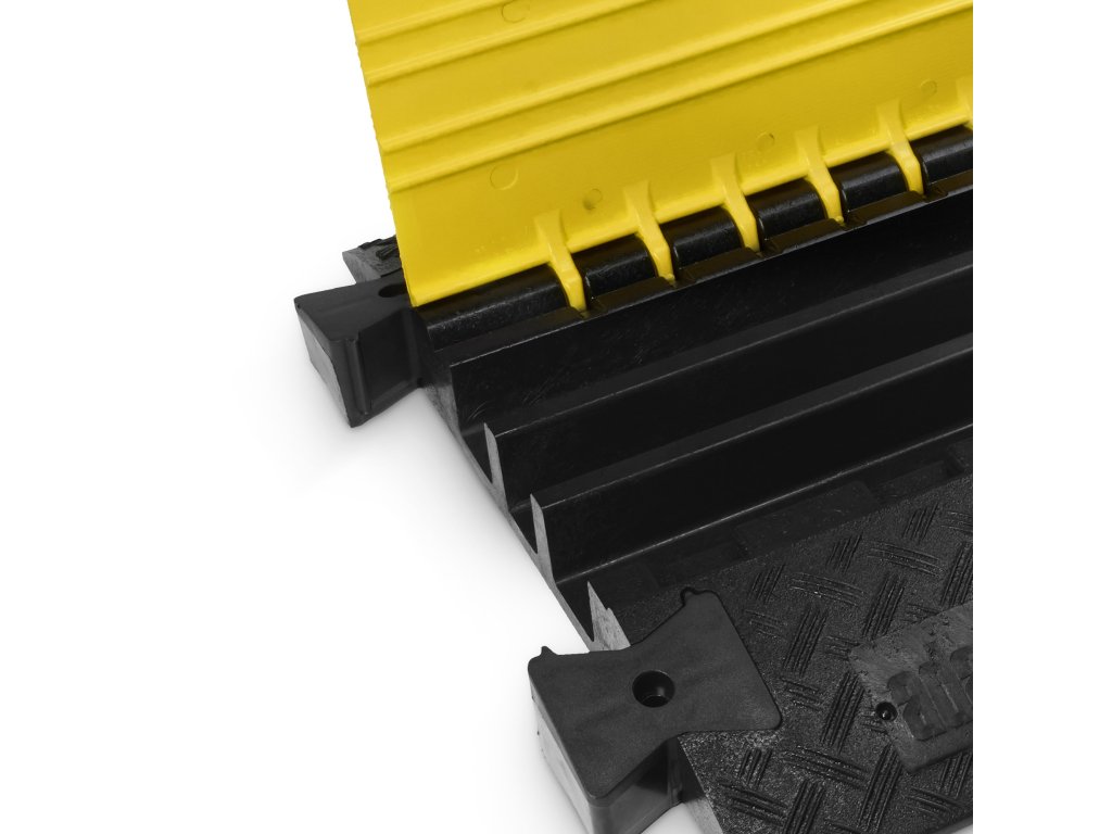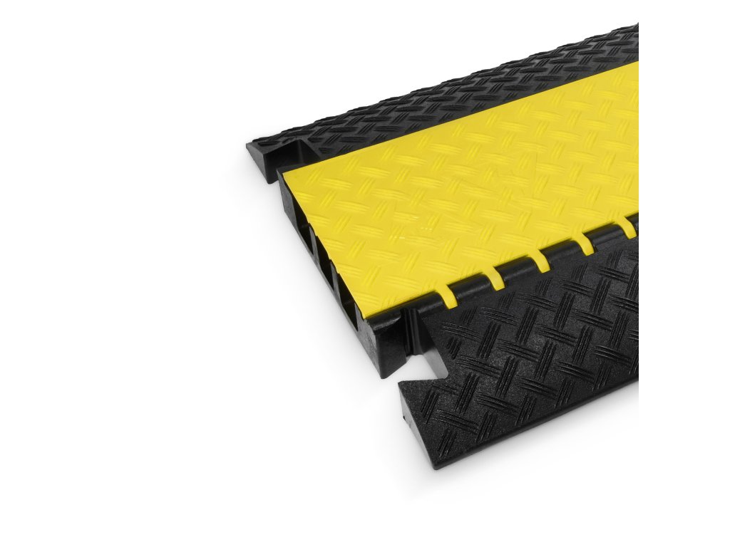 System Defender 3 to najpopularniejsze rozwiązanie do prowadzenia kabli z 3 średnimi kanałami. Profil o wysokości 73 mm i zakrzywieniu 45° zapewnia bezpieczny przejazd dla pojazdów i pieszych. Praktyczne rampy końcowe ze zdejmowanymi złączami jaskółczymi ułatwiają instalację.