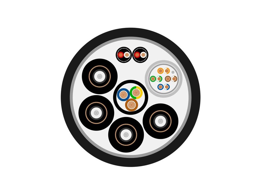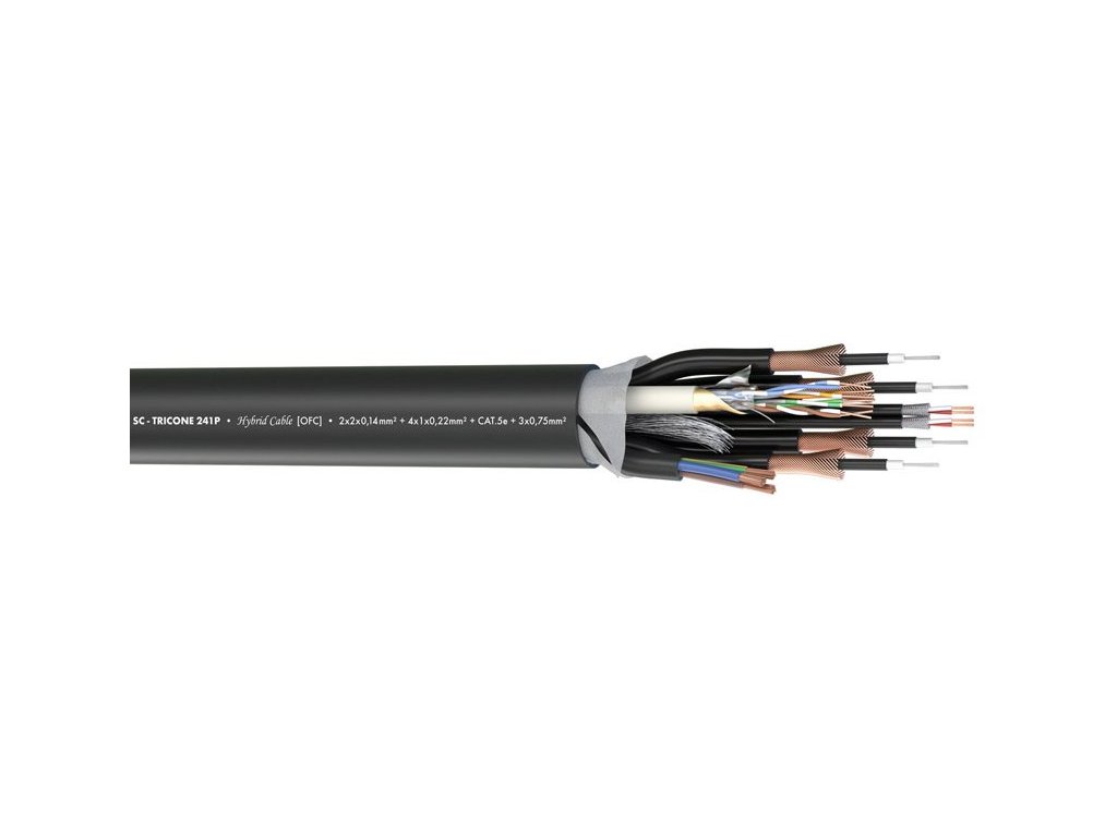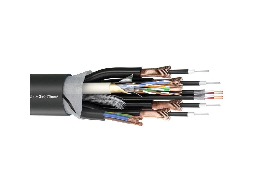 Hybrydowy multikabel specjalnie opracowany dla wymagających gitarzystów. Unikalny kabel zapewnia połączenie czterech różnych kabli w jedną zwartą całość. Doskonałe połączenie dla instrumentów, efektów i urządzeń MIDI. Zasilanie i to wszystko jest zapakowane w odporną na promieniowanie UV powłokę PVC o średnicy 21,8 mm ze 100% ekranowaniem za pomocą folii AL, wszystkie przewody są wykonane z wysokiej czystości miedzi OFC. Całkowicie zawiera 4 x kabel niesymetryczny, 2 x kabel symetryczny, 1 x kabel danych CAT.5e i 1 x kabel zasilający 230 V. Wykorzystanie w aplikacjach mobilnych i studyjnych. Waga 1 m 460 g, kolor czarny.