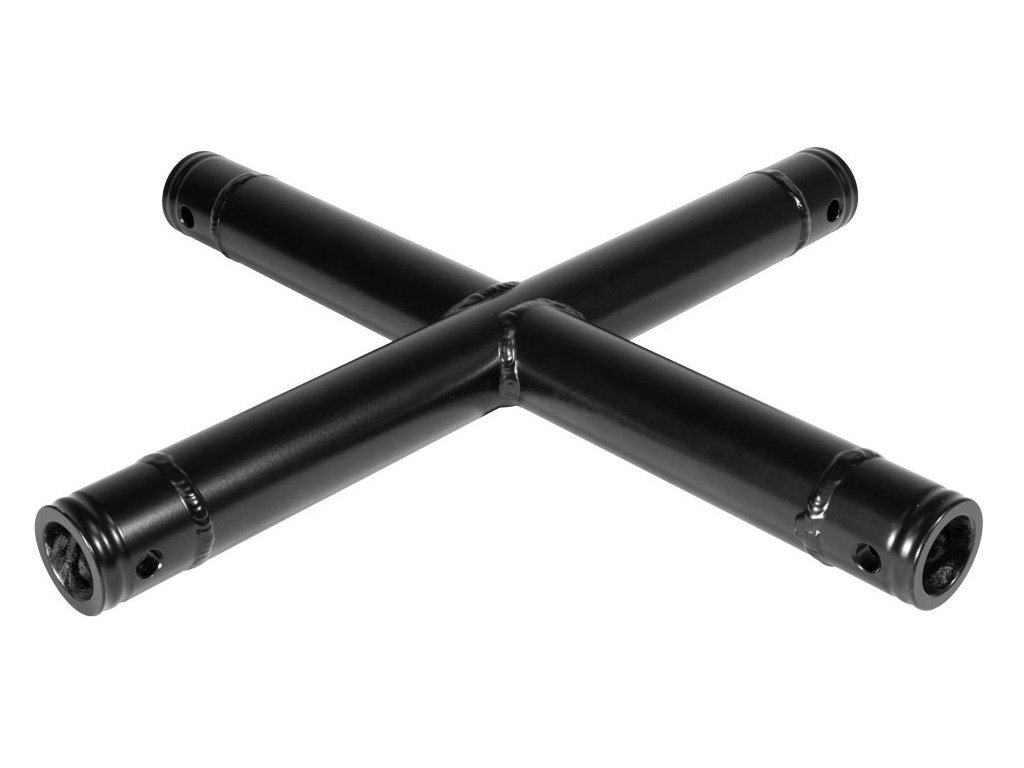 Czterodrożne złącze aluminiowe w kształcie litery X. Kolor czarny.