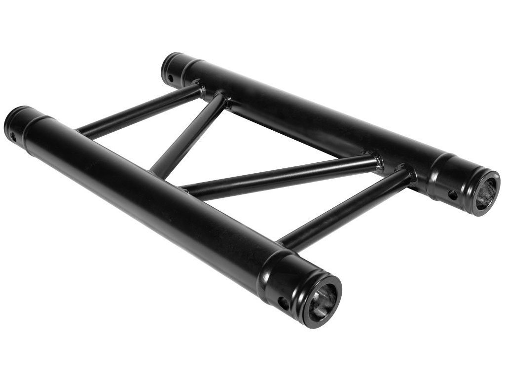 Prosty element konstrukcyjny do budowy słupów i podiów oraz do zawieszania instalacji oświetleniowych lub dźwiękowych. Element z serii DT 32-2 składa się z dwóch głównych rur o średnicy 50 mm i grubości ścianek 2 mm. Pręty podtrzymujące mają średnicę 20 mm i grubość ścianek 2 mm. Konstrukcja wykonana jest ze stopu AlMgSi1, dzięki czemu każdy z elementów serii DT 32-2 zachowuje niską wagę i wysoką wytrzymałość. Element jest wyposażony w końcówki do zasilania kolejnych elementów. Wymiary: 500 x 290 x 50 mm, waga: 1,7 kg. Kolor czarny.