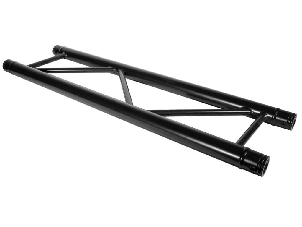 Prosty element konstrukcyjny do budowy słupów i podiów oraz do zawieszania instalacji oświetleniowych lub dźwiękowych. Element z serii DT 32-2 składa się z dwóch głównych rur o średnicy 50 mm i grubości ścianek 2 mm. Pręty podtrzymujące mają średnicę 20 mm i grubość ścianek 2 mm. Konstrukcja wykonana jest ze stopu AlMgSi1, dzięki czemu każdy z elementów serii DT 32-2 zachowuje niską wagę i wysoką wytrzymałość. Element jest wyposażony w końcówki do zasilania kolejnych elementów. Wymiary: 1500 x 290 x 50 mm, waga: 3,6 kg. Kolor czarny.