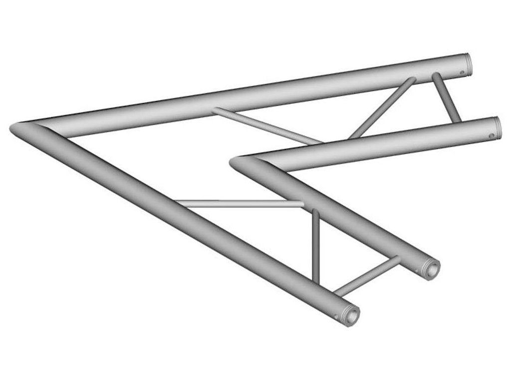 Narożny element konstrukcyjny do budowy słupów i podiów oraz do zawieszania instalacji oświetleniowych lub dźwiękowych. Element z serii DT 32-2 składa się z dwóch łączących się prętów o średnicy 50 mm i grubości ścianek 2 mm. Pręty podtrzymujące mają średnicę 20 mm i grubość ścianek 2 mm. Konstrukcja wykonana jest ze stopu AlMgSi1, dzięki czemu każdy z elementów serii DT 32-2 zachowuje niską wagę i wysoką wytrzymałość. Element jest wyposażony w końcówki do zasilania kolejnych elementów. Kąt nachylenia: 60° w poziomie. Wymiary: 1000 x 1000 x 50 mm, waga: 3,4 kg.