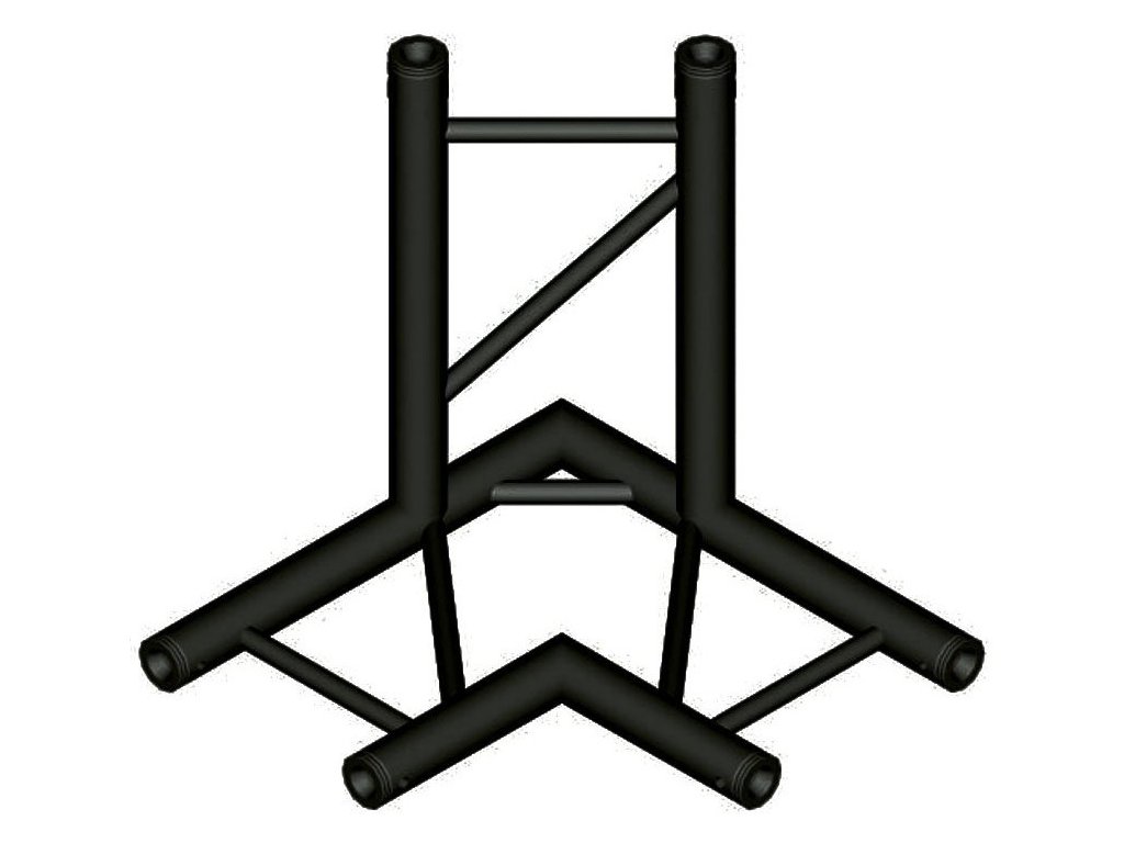 3-drożny aluminiowy element narożny 90 ° + poziomo w dół. Kolor czarny.