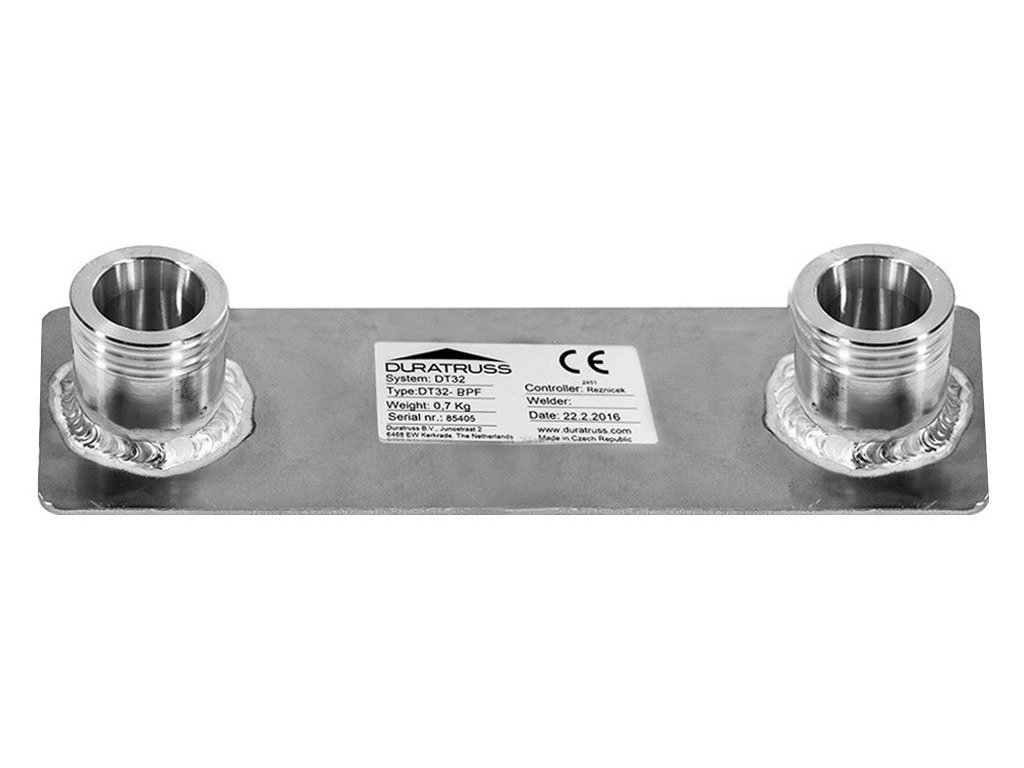 Element konstrukcyjny do budowy konstrukcji scenicznych. Część jest wyposażona w złącza typu żeńskiego i jest przeznaczona jako podstawa do budowy elementów kolumnowych konstrukcji i ma wymiary: 310 x 100 x 5 mm, waga: 0,9 kg.