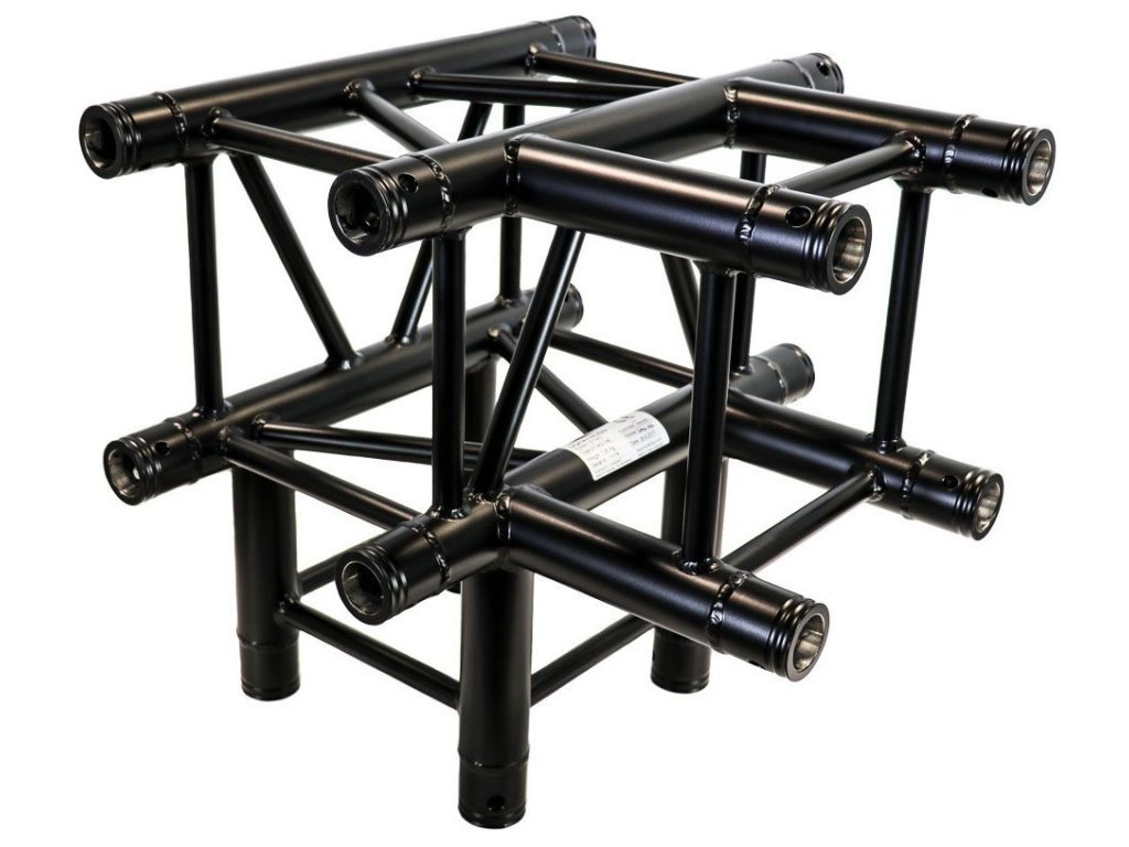 Aluminiowa kształtka czterodrożna w kształcie litery T. Kolor czarny.