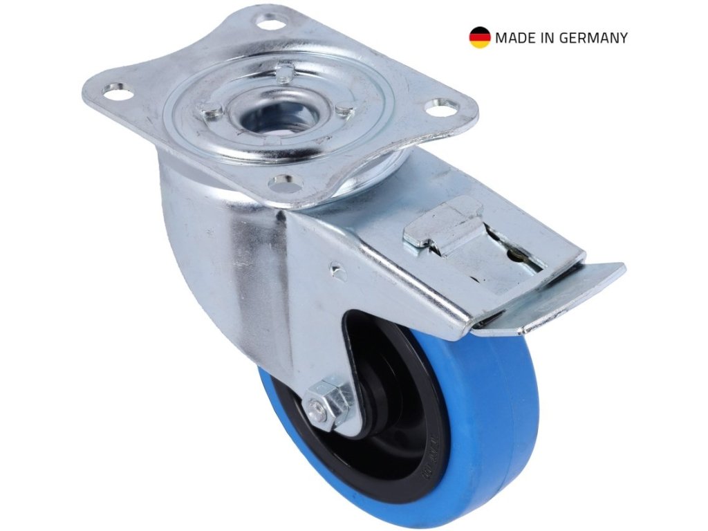 Kółko obrotowe 100 mm z niebieskim kółkiem i hamulcem.