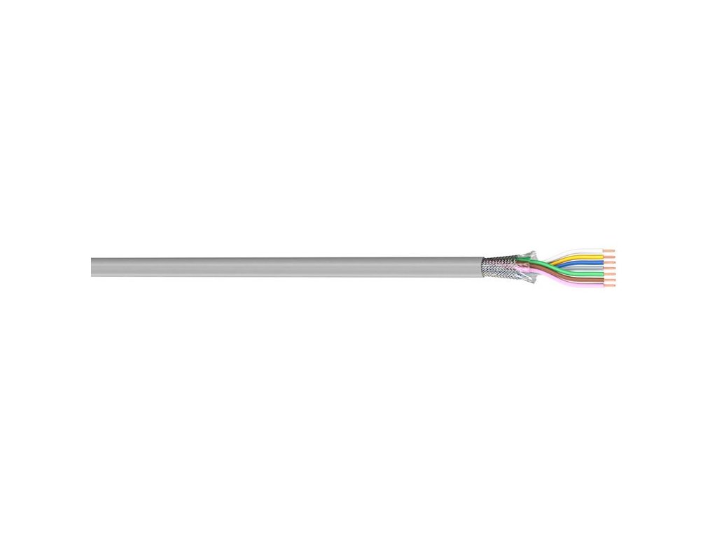 Elastyczny kabel sterowniczy, ale wytrzymały, 7 x 0,50 mm LIY-CY z miedzi OFC. Kabel służy jako przewód sygnałowy w zakresie miliamperów dla urządzeń sterujących, takich jak RS232 lub RS422. Całkowita średnica kabla 7,2 mm, ekranowanie 90%, kolor szary, klasa CRP Eca. Specjalne PVC jest niepalne i samogasnące zgodnie z VDE 0472 i częścią 804 oraz przeszło test FRNC typu B (zgodnie z DIN EN 60332-1-1 / IEC 60332-1).